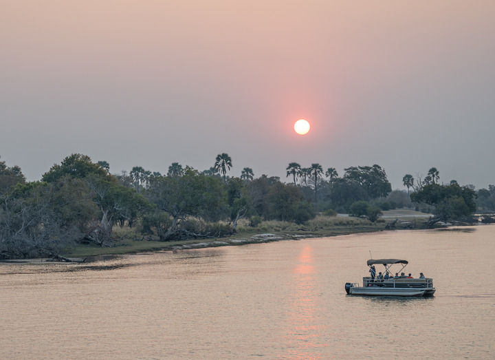 8月23日,在赞比亚拍摄的赞比西河上的游船。