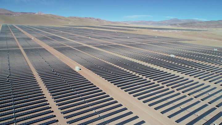 这是2020年5月11日拍摄的阿根廷胡胡伊省高查瑞300兆瓦光伏发电项目光伏发电板(无人机照片)。新华社发(上海电建阿根廷高查瑞300兆瓦光伏发电项目项目部供图)