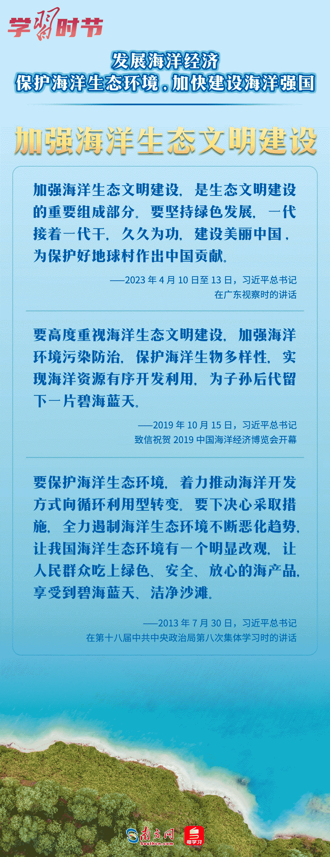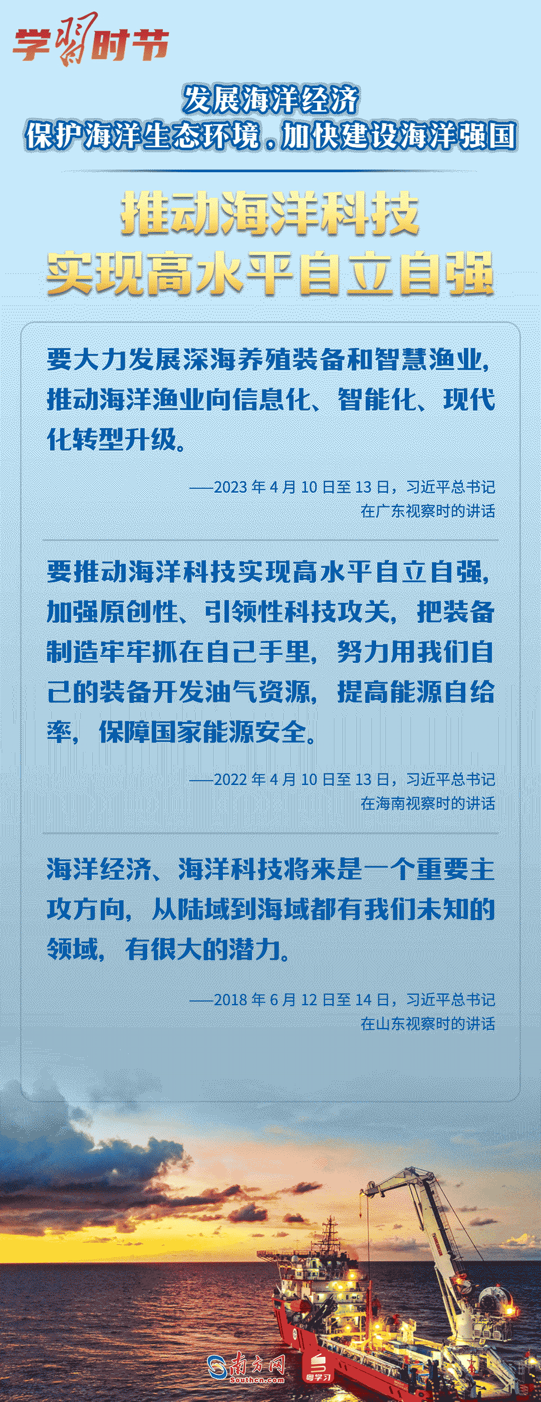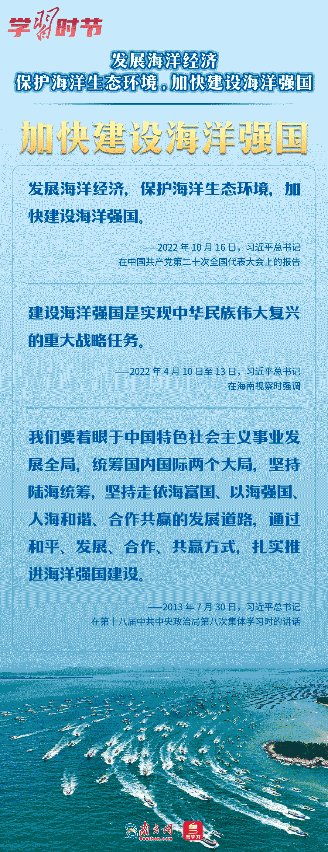 当前,广东正全面加快海洋强省建设,海洋空间开发格局持续优化,海洋经济综合实力不断提升。由中央网信办网络传播局指导、广东省委网信办主办的“向海图强看广东”大型网络主题宣传活动于10月30日启动,让我们一同重温总书记关于海洋强国建设的重要论述,感受总书记的“海洋情怀”。