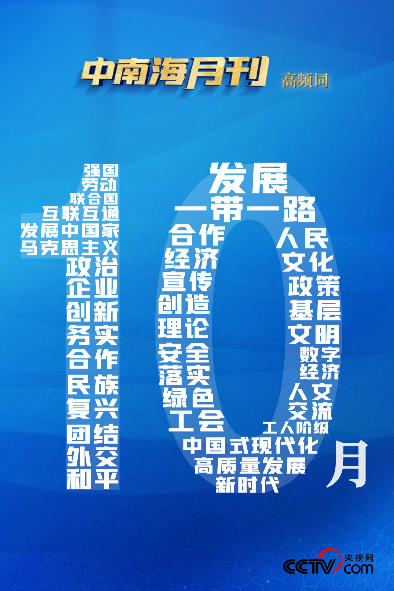 央视网《中南海月刊》运用智能大数据,与您一起回顾金秋10月的中华大地,在习近平新时代中国特色社会主义思想的引领下,奋进前行的脚步。
