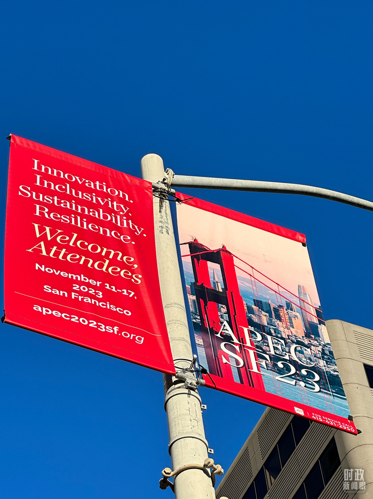△旧金山街头,本次APEC会议宣传语。(总台国广记者时冉拍摄)