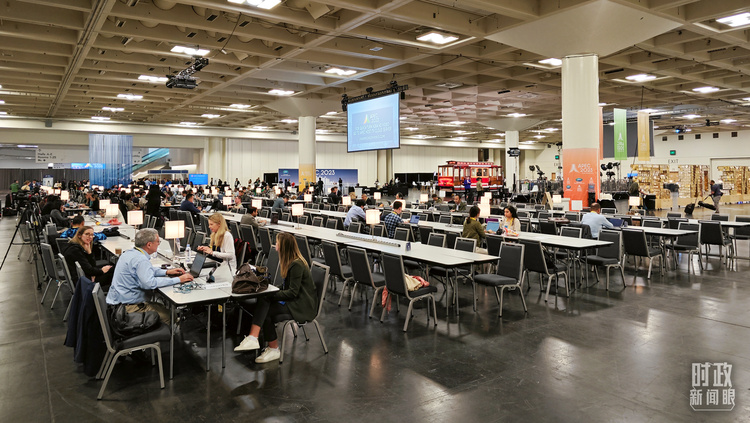 △APEC会议国际媒体中心,各国记者正在工作。(总台央视记者王哈男拍摄)