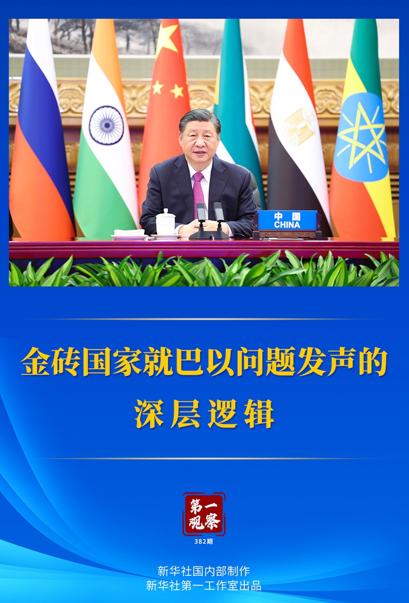 “当前形势下,金砖国家就巴以问题发出正义之声、和平之声,非常及时、非常必要。”在讲话中,习近平主席开宗明义。