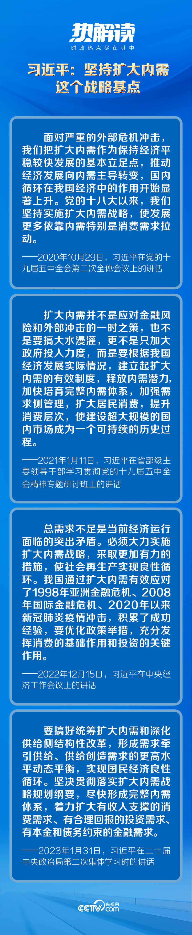党的十八大以来,习近平总书记从我国经济运行的实际出发,对扩大内需作出了一系列重要论述,为实施扩大内需战略提供了科学指引。