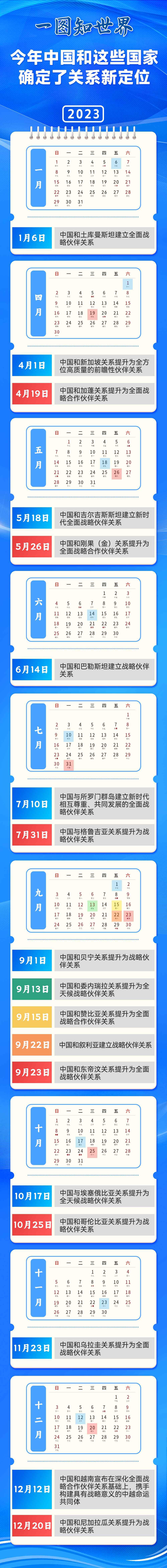 中国致力于同所有国家本着和平共处五项原则发展友好伙伴关系。中国的好朋友遍天下。今年以来,中国和哪些国家确定了关系新定位?我们来一图读懂——