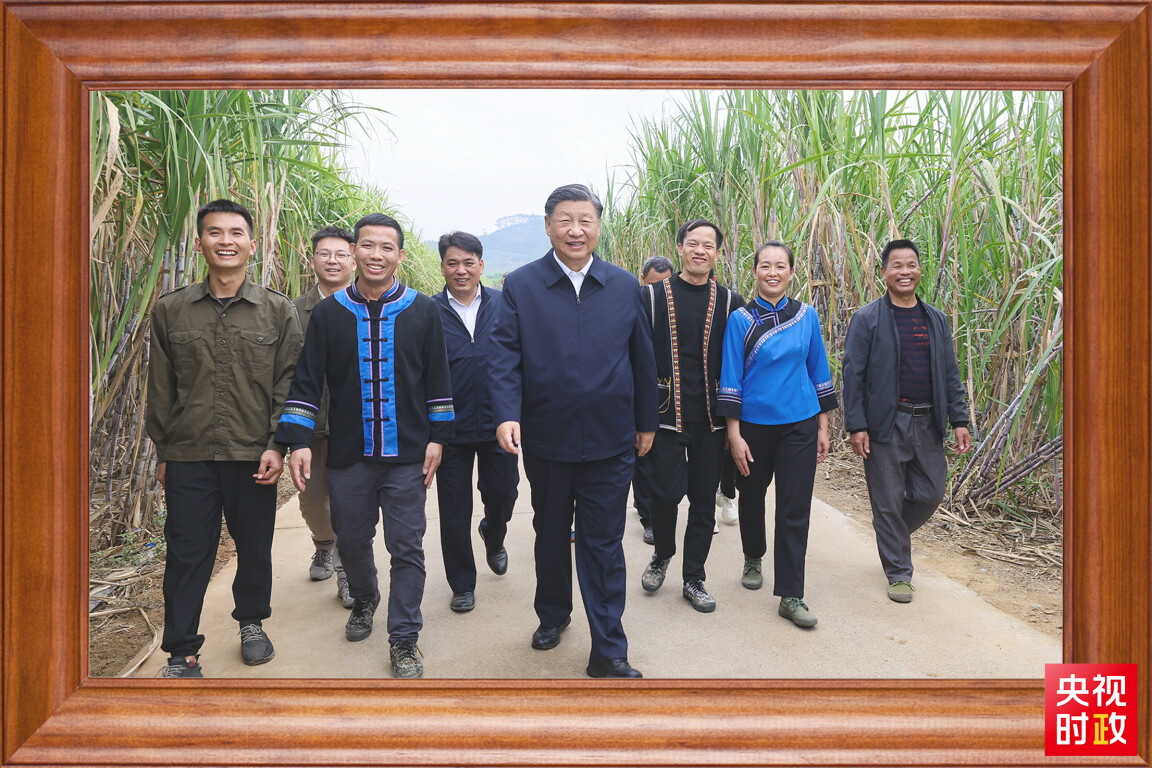 一根甘蔗,甜了村民的生活。总书记走进甘蔗林,详细了解甘蔗良种繁育技术要领,同蔗农、农机手和农技人员亲切交流,祝愿乡亲们的生活像甘蔗一样甜蜜。