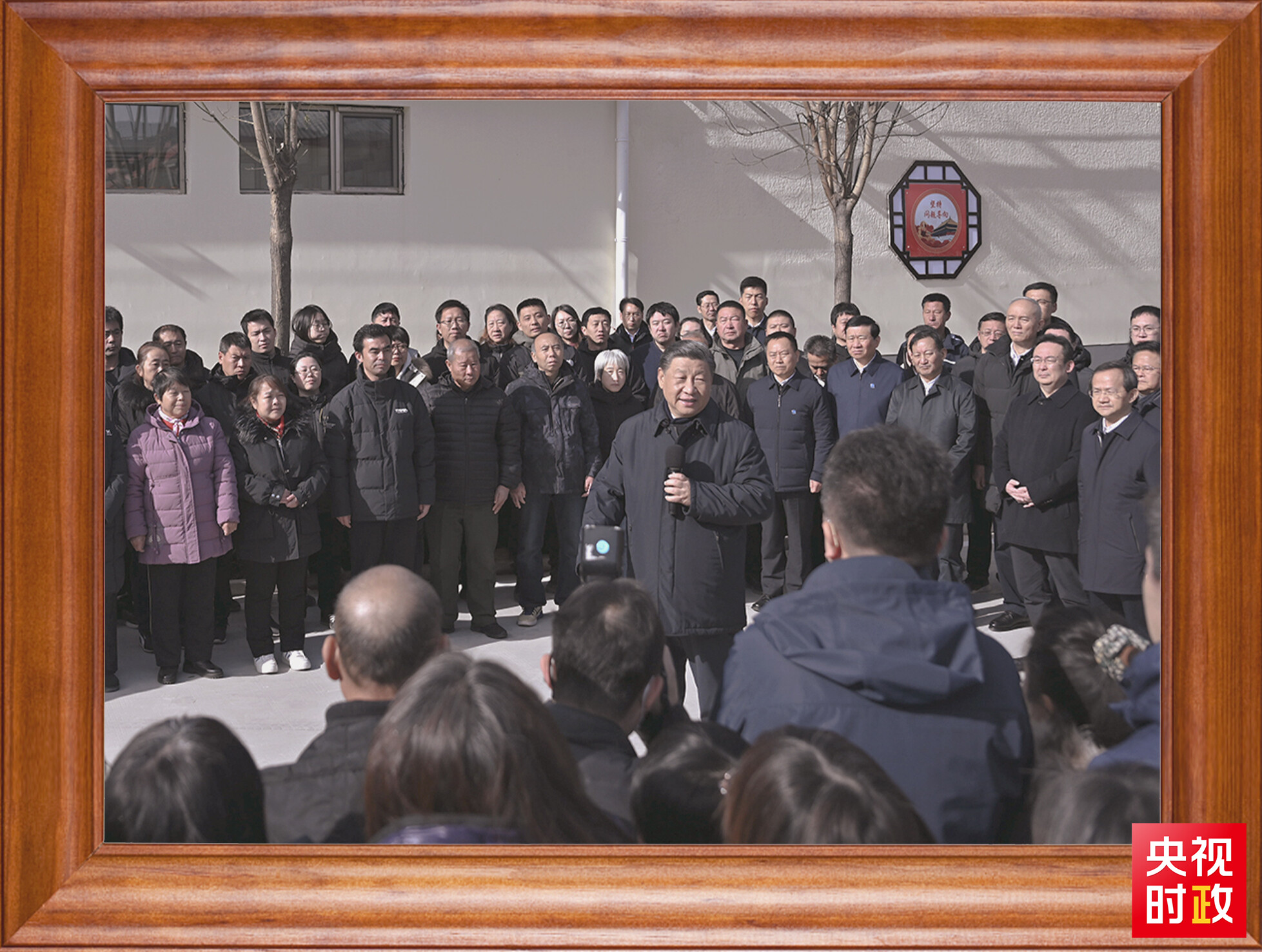 习主席身后书架上摆放的照片引人关注,其中很多张照片是首次出现在书架上。