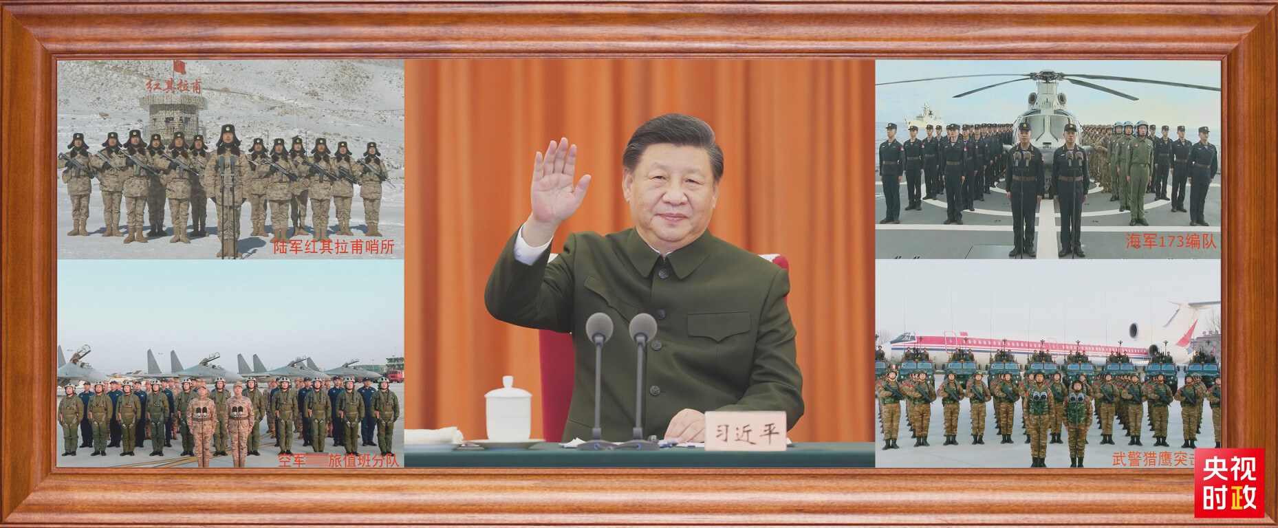 2023年1月18日,习近平在北京八一大楼以视频方式检查部队战备工作,亲切慰问有关部队,代表党中央和中央军委,向全体人民解放军指战员、武警部队官兵、军队文职人员、民兵预备役人员致以诚挚问候和新春祝福。