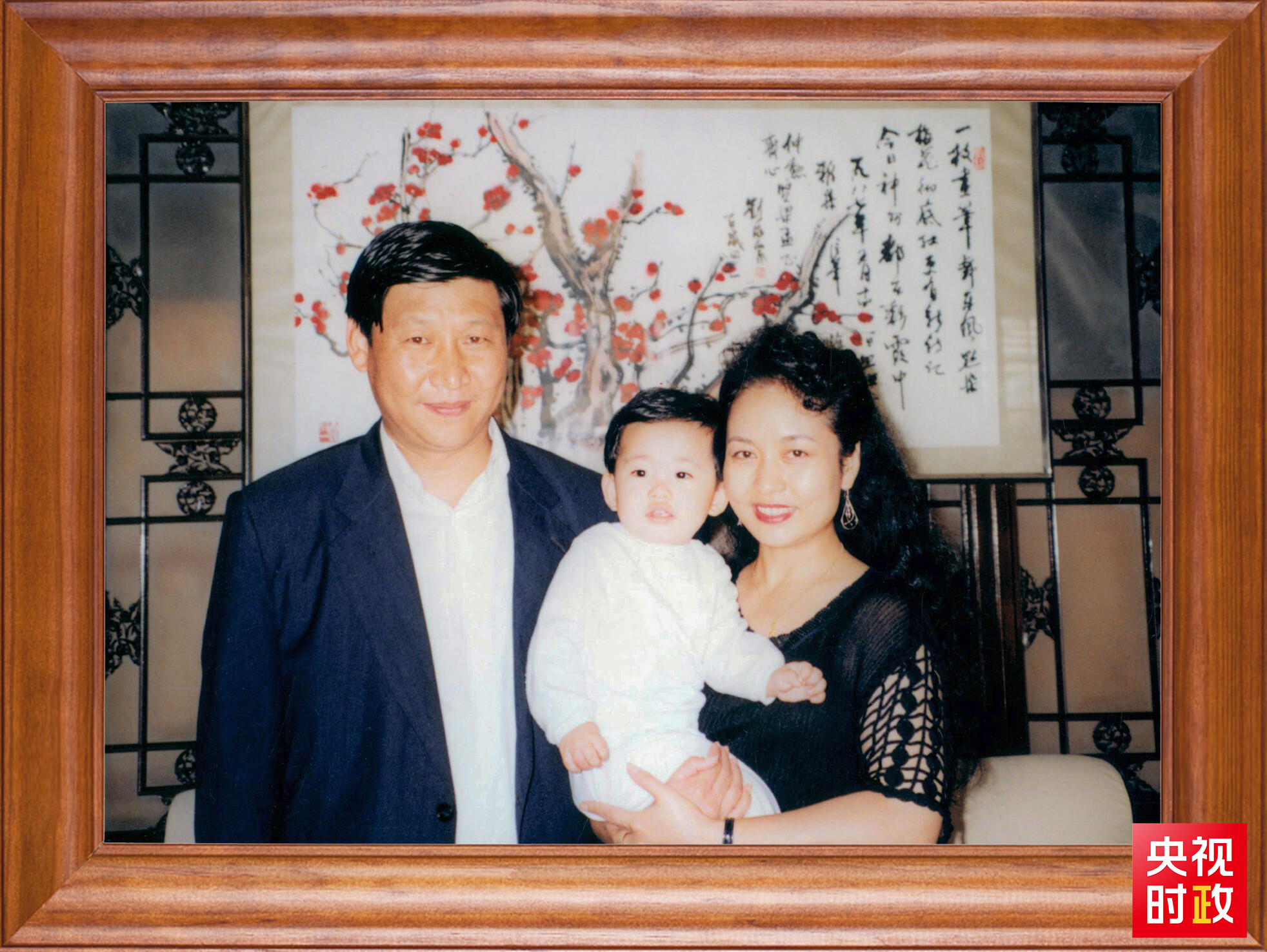 习近平一家三口的合影。这张照片第一次出现在他的书架上。