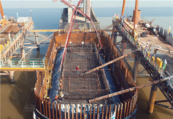 2月28日6时,经过22小时不间断施工,广东交通集团所属中江高速改扩建项目西江特大桥主桥的最后一个主墩承台浇筑完成,一次性浇筑混凝土约1800立方米。至此,西江特大桥“三足”稳稳扎根西江,大桥正式由水下基础施工转向水上主塔施工。