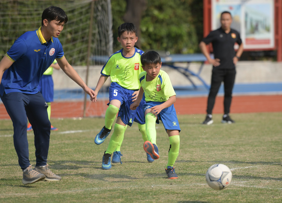 轻松愉悦的热身训练后,南粤足球明星队还与体育路学校家校联队、石岐街道办事处联队进行了11人制联谊赛。