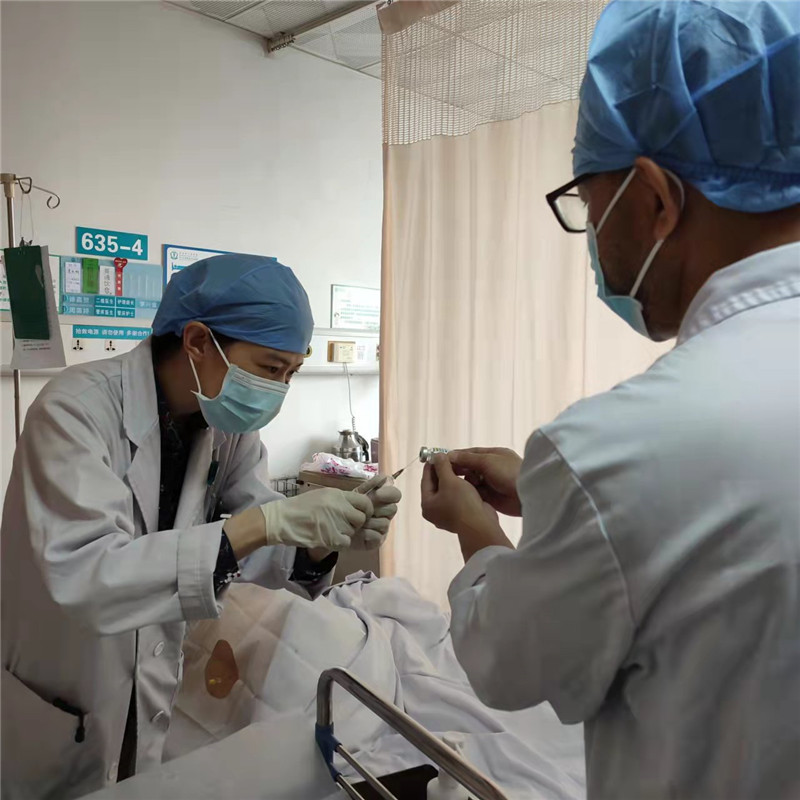 今天上午,在市人民医院神经内科病房里,护工把杏子从轮椅抱上病床,一位医生固定体位,另一位医生开始给杏子作注射前的准备,在腰椎位置消毒、铺上孔巾,局麻、腰椎穿刺、抽5毫升脑积液,然后鞘内注射“诺西那生钠”药物,“整个过程都不疼,只有一点胀。”杏子说,打完针平躺6小时后就可出院。