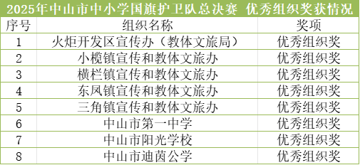 经过一天紧张激烈的比拼,决赛结果出炉。其中,中山迪茵公学(高中)、中山市技师学院、中山市第一中学获得高中(中职)组一等奖;中山市阳光学校、中山迪茵公学(初中)、中山市三鑫学校、中山市三角中学获得初中组一等奖;中山市石岐中心小学、中山市南头镇中心小学、中山市横栏镇横栏小学、中山市小榄镇九洲基小学、中山市小榄镇联丰小学、中山市五桂山学校获得小学组一等奖。