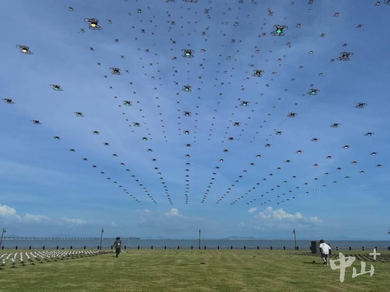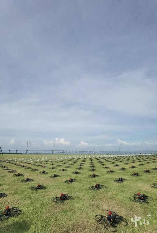 9月29日傍晚,2000架无人机在翠亨新区马鞍岛沿海空域完成首次彩排,以深中通道为背景勾勒出震撼光影图案,宣告中山市飞阅“百千万”无人机表演活动进入倒计时。