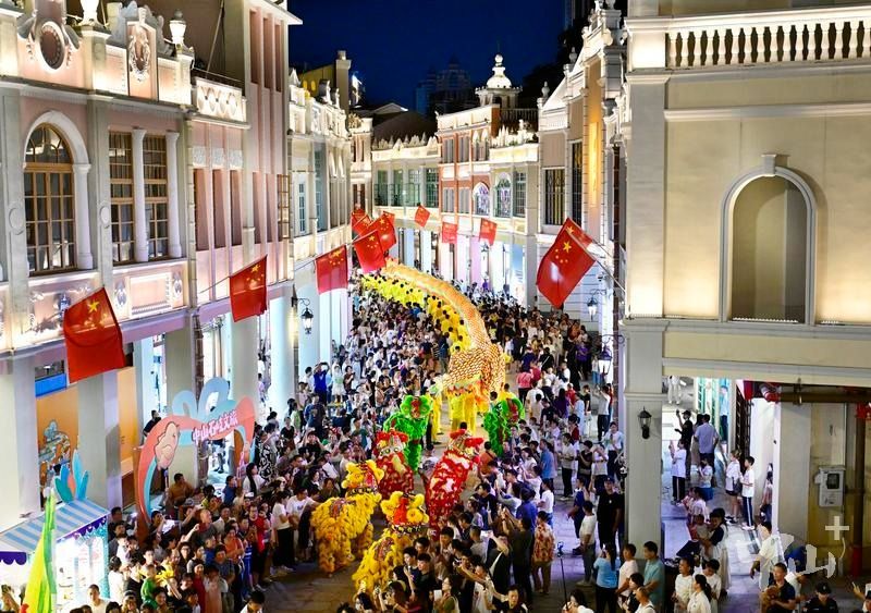 假期首日夜幕降临,中山孙文西路步行街上灯火如昼,鼓乐声、叫卖声、游人言笑声在百年骑楼间交织。