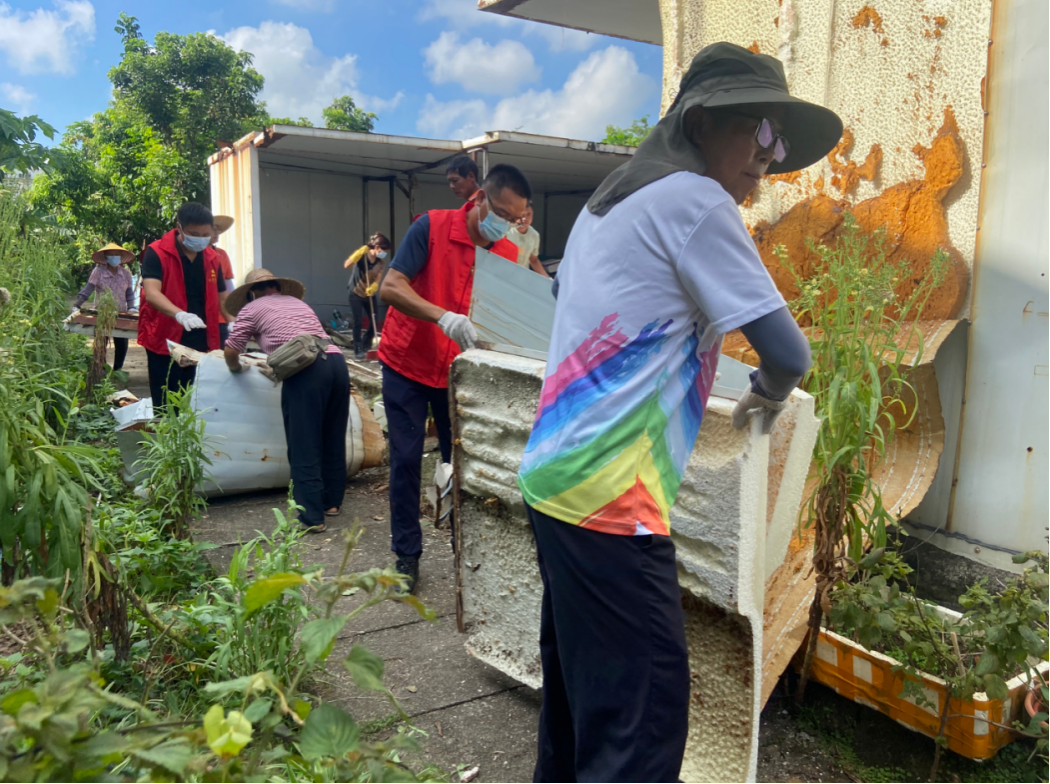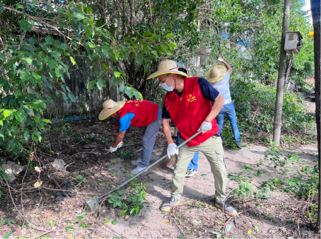 蟠龙村联合中山市财政局、三角镇城市更新和建设服务中心、蟠龙小学,组织驻村干部、村“两委”、村工作人员、老师、党员志愿者等150余人次,开展人居环境整治暨防控“两热”统一行动。以朝阳路、爱国工业区五巷为重点,集中攻坚,拆除违规搭建1处,清理卫生黑点13处,出动垃圾清运车辆6车次,清除各类树枝杂物约2吨;入户宣传防控“两热”知识约800户次,清理积水容器200余处;利用热雾消杀及水剂喷雾进行全域消杀,覆盖33个生产社。