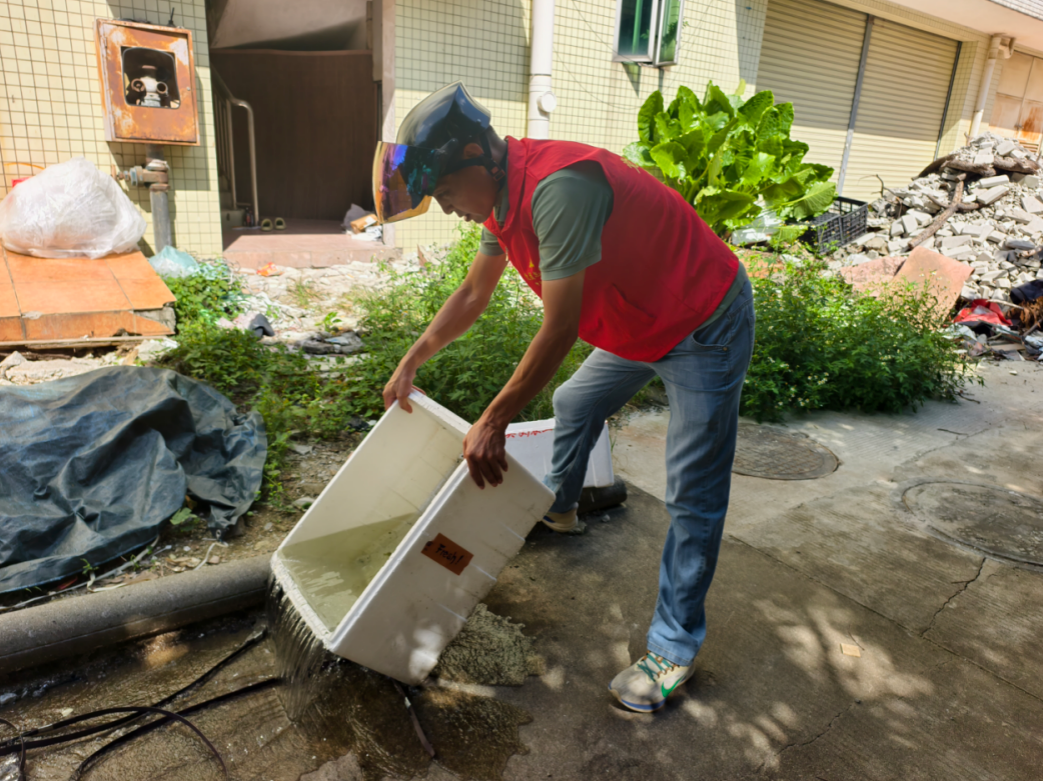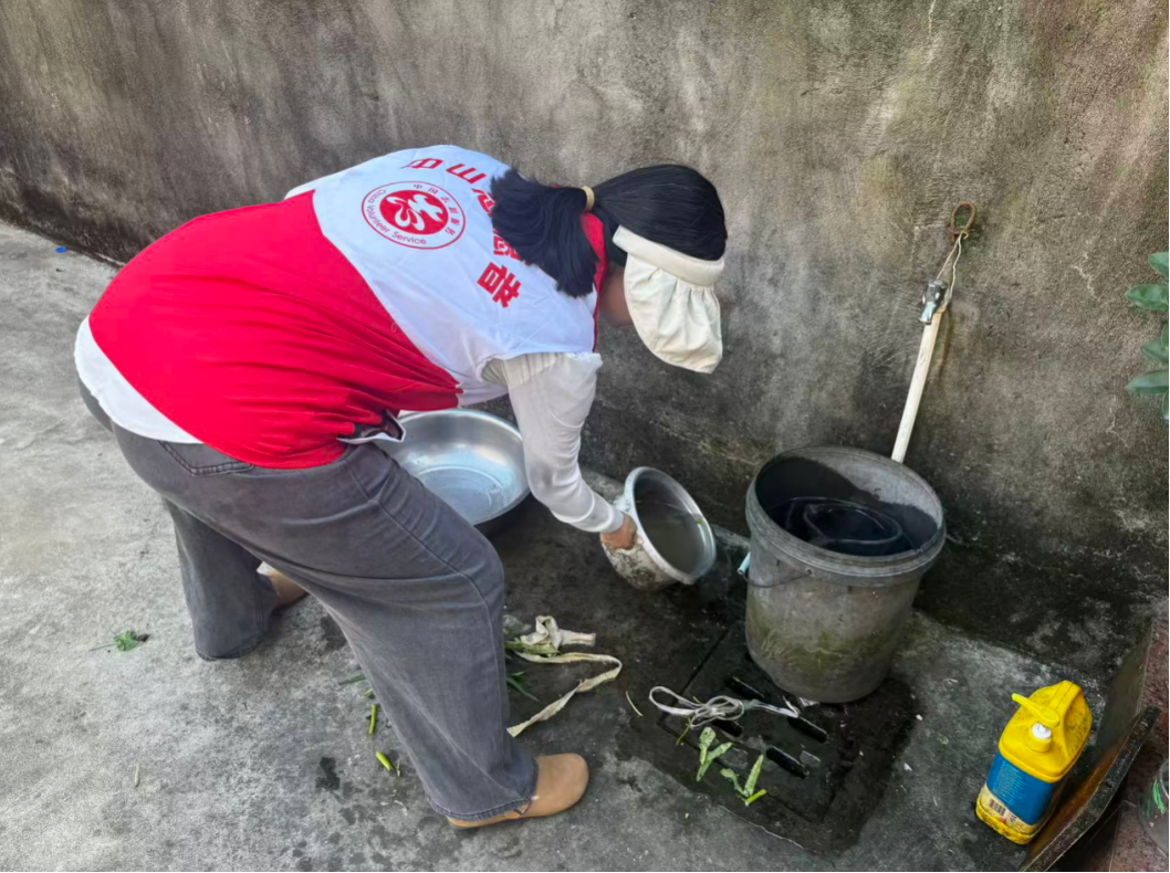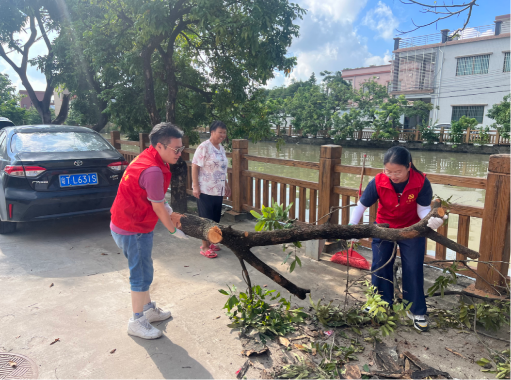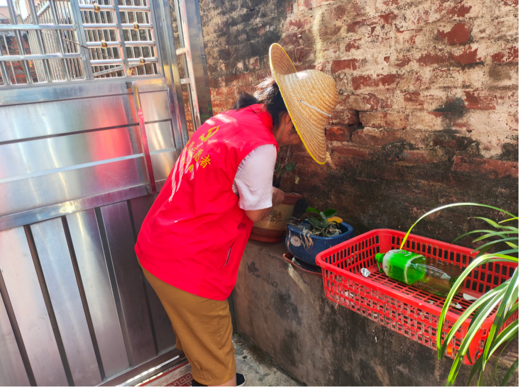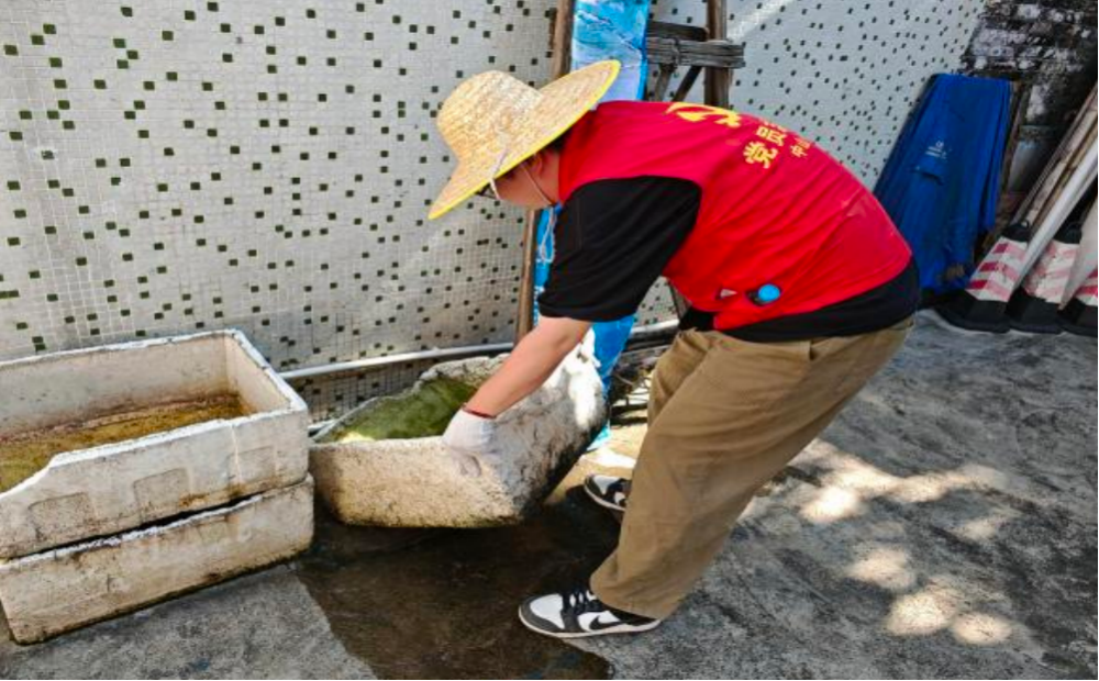 东南村联合市财政、三角镇党建办、三角镇卫健分局,集结32余名驻村部门党员志愿者、村民小组长,下沉到防汛路和东会北街,创新采用“排查清理同步走、走访宣传相结合”方式,完成305户家庭走访排查,清除165余处积水、派发50余份宣传资料;调动4车次垃圾清运车,清理21处卫生黑点及2吨垃圾;对重点区域开展热雾消杀,筑牢自主防控防线。