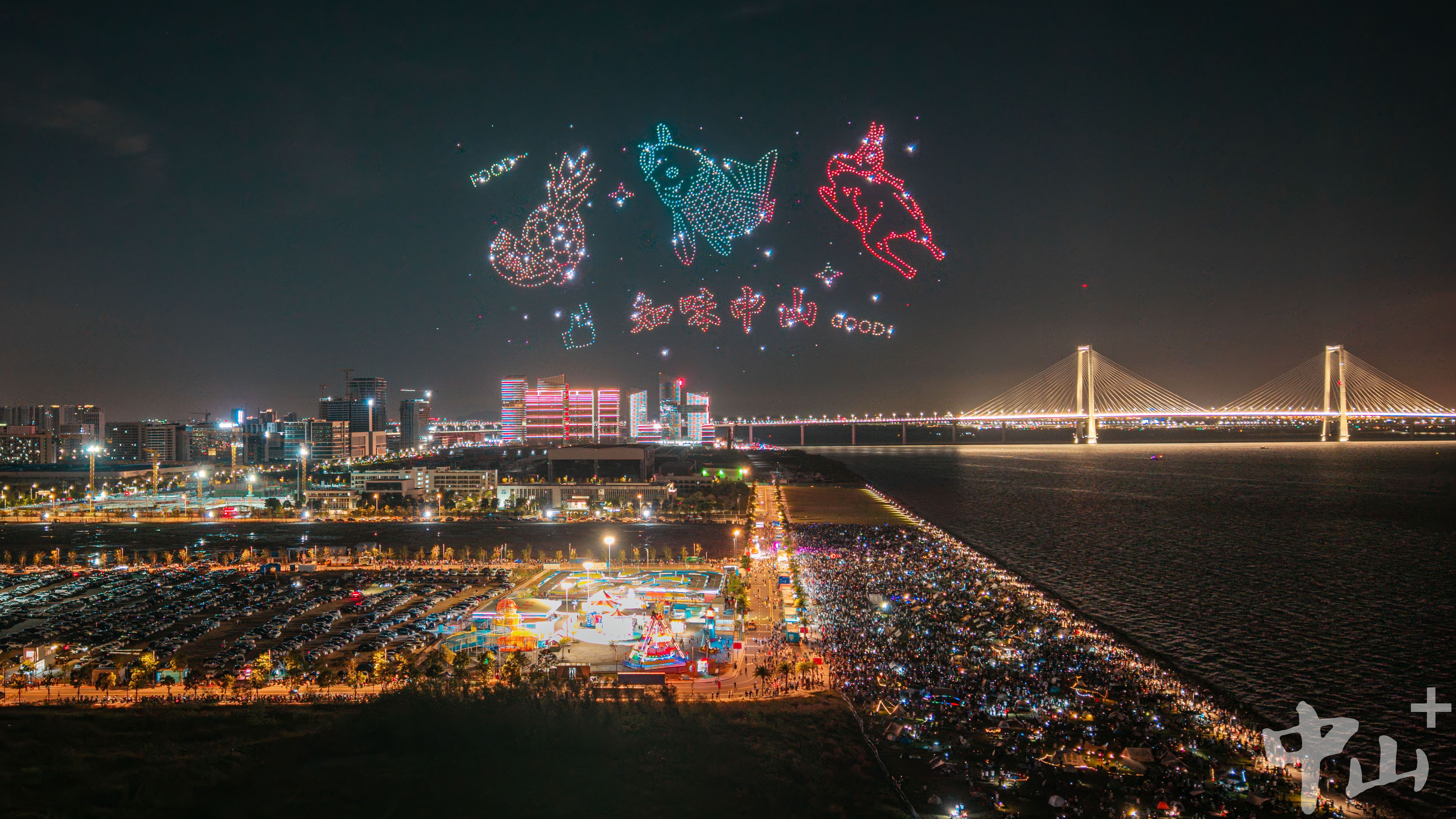“深中通道”图案升空时的齐声喝彩,让“百千万工程”的发展成果变得可感可知;“先看无人机秀,再逛中山”的跨城出行热潮,更让活动成为串联文旅资源的纽带——它不仅直接带动周边餐饮、住宿消费增长,更将位于马鞍岛的深中通道日出观赏点与孙文西路步行街、中山影视城、红博城等文旅地标连成线路,助力中山打造大湾区知名文旅目的地。这种“文旅+科技+消费”的融合模式,为中山文旅高质量发展探索出了新路径。