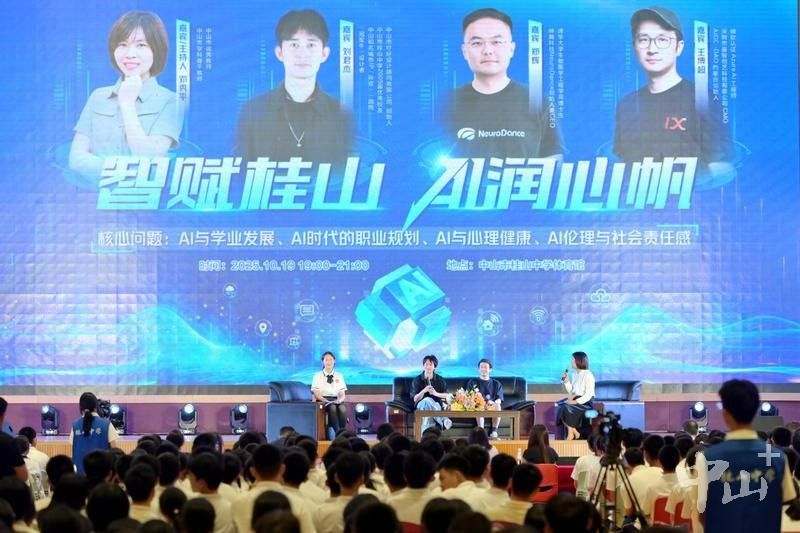 10月19日晚,中山市青春期教育三年行动计划品牌项目“青春聊聊吧”(桂山中学专场)大型活动,在中山市桂山中学举行。本次活动由中山市教师发展中心主办,中山市桂山中学承办,以“智赋桂山,AI润心帆”为主题,现场邀请多位前沿科技人才开讲,为1000多名师生、家长开启了一场关于AI时代的对话与探索。