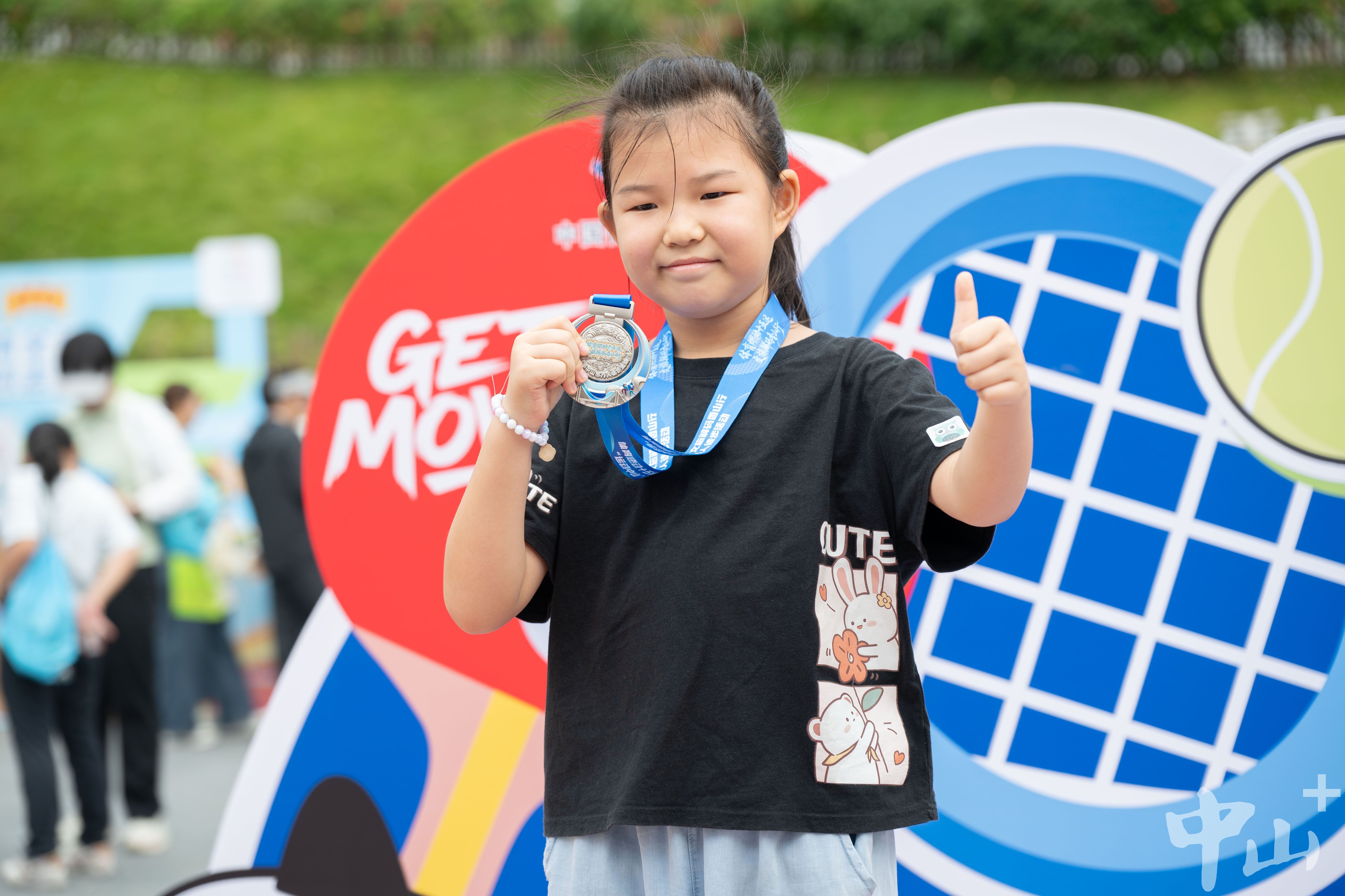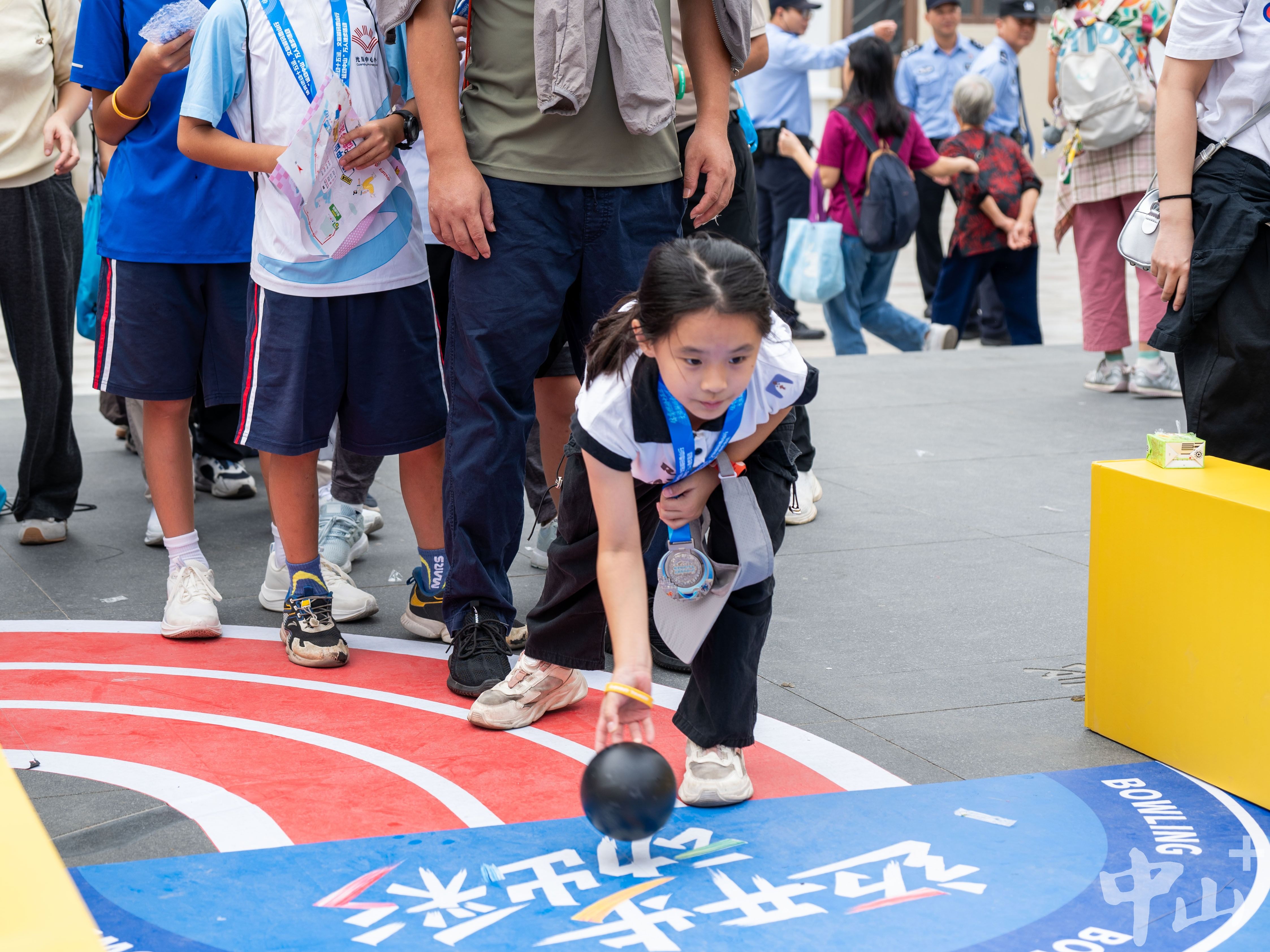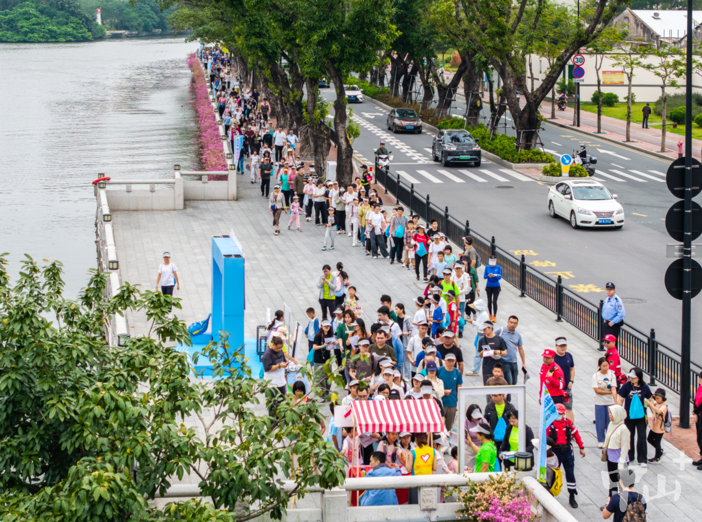 除了欣赏沿途风景外,参与者还能体验多种互动活动。沿途设有打卡装置、游戏区和补给站。全运会主题留影墙前,不少市民排队合影;互动问答区则设置了涵盖全运知识、体能挑战、方言文化等六大主题的游戏打卡点。答对问题即可获得印章,集满四枚后,可在终点兑换专属纪念奖牌。此外,线上“2025年‘运动中山’云徒步”活动也同步开启,让更多市民一同感受运动氛围。