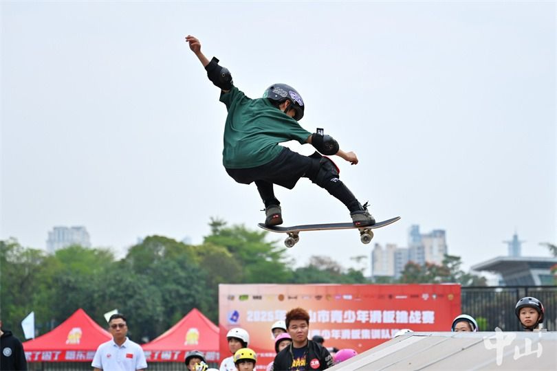 中山市滑板运动协会今年1月成立。据协会秘书长介绍,协会目前注册的中山滑板运动员有40多名,通过参与2025年中山市青少年滑板挑战赛和2025年广东省青少年滑板赛锦标赛,来自古滑俱乐部的火琇实、蔡翊桐、黄靖童、麦梓熙以及其他各俱乐部共12名小滑手将组队训练,全力冲击即将到来的2026年省运会。