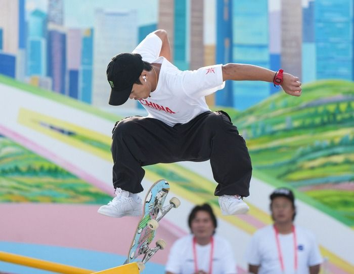 男子街式冠军被25岁的中山选手潘家杰获得。当天他完成了两个“大招”:“两个动作已经练了三四年了,从没有百分百地把握。受过很多伤,走过很多路,今天终于圆梦了。”他说,这是他十年来最满意的一次比赛,他鼓励年轻选手保持热爱:“小朋友们都很厉害,滑板最重要的是心态——怎么开心就怎么去玩。”