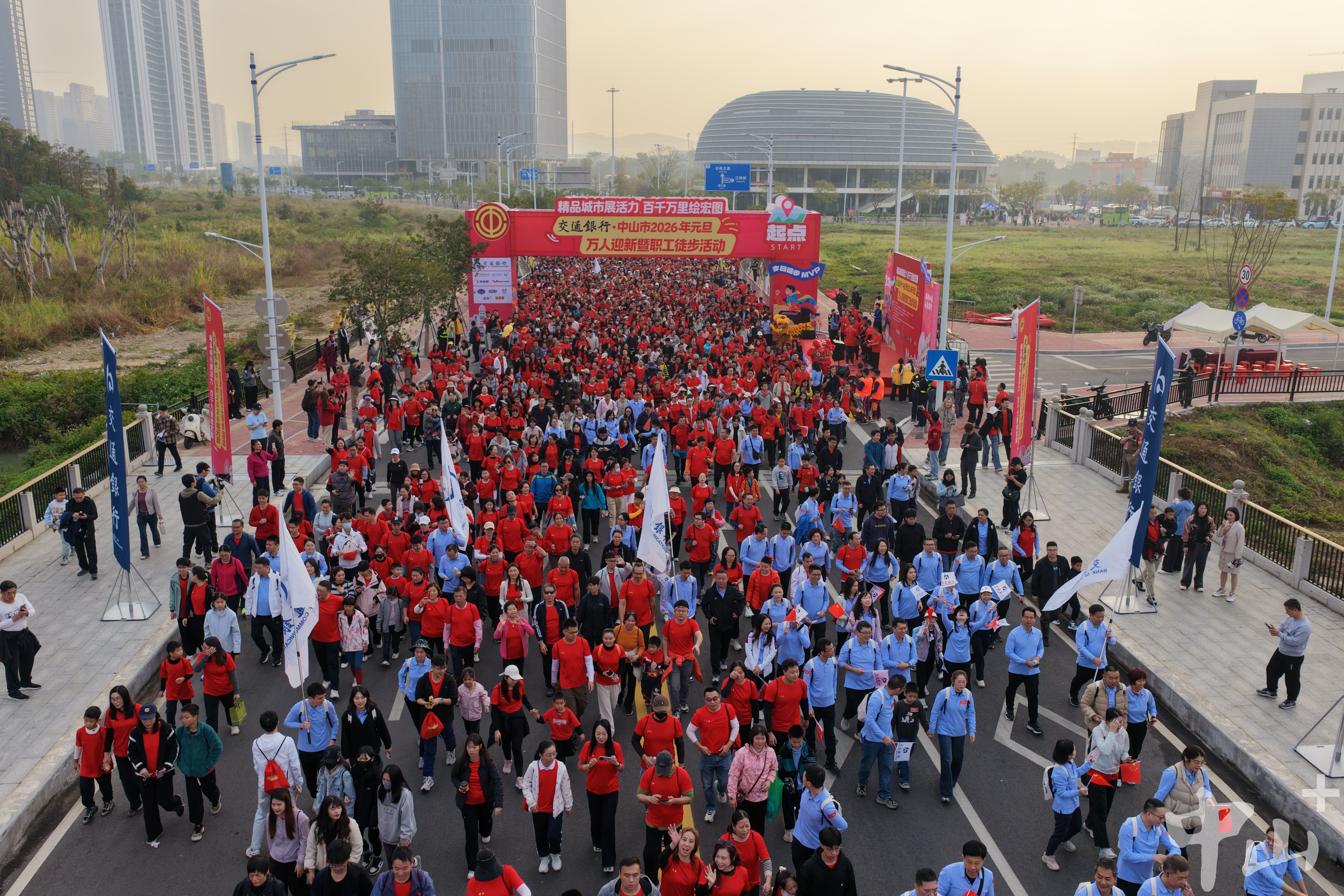 1月1日,中山市2026年元旦万人迎新暨职工徒步活动在岐江新城体育馆起步。本次活动以“精品城市展活力·百千万里绘宏图”为主题,吸引了逾万名市民、职工参与,以徒步健身的方式共同迎接新年,用脚步丈量城市发展成果。