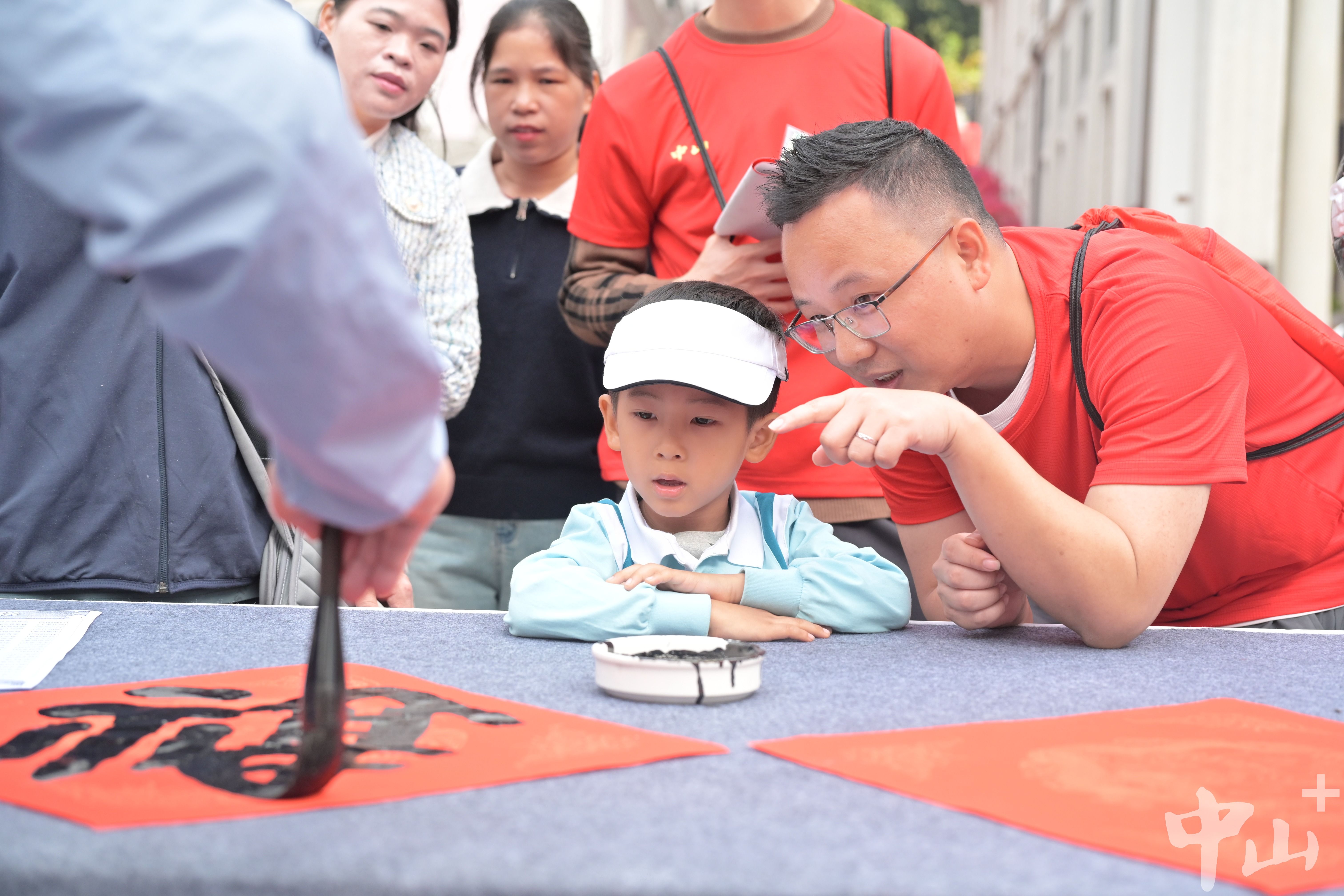 在龙舟文化公园打卡点,春联DIY、公益体彩互动等服务吸引了大量参与者。市民陈先生带着孩子请书法家书写对联,他表示:“一边徒步锻炼,一边体验传统文化,活动安排很丰富。”市民宋女士一家四口参加活动,表示:“一边徒步锻炼,一边体验传统文化,一边看中山城市的变化,活动安排很丰富,以活力满满的状态迎接新年。”