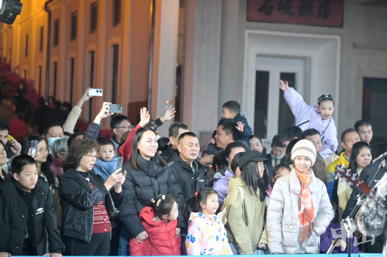 1月2日晚,中山市孙文西路步行街大庙下舞台前人潮涌动,掌声、合唱声与节奏强劲的电声音乐此起彼伏,现场气氛“燃爆”。