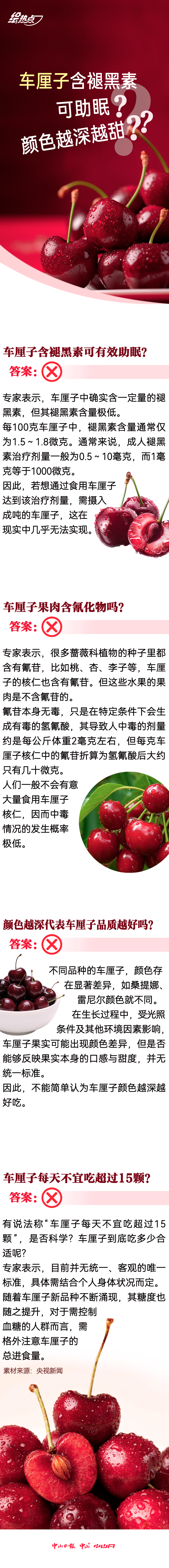 车厘子含褪黑素可助眠?颜色越深越甜?真相是→|绘热点