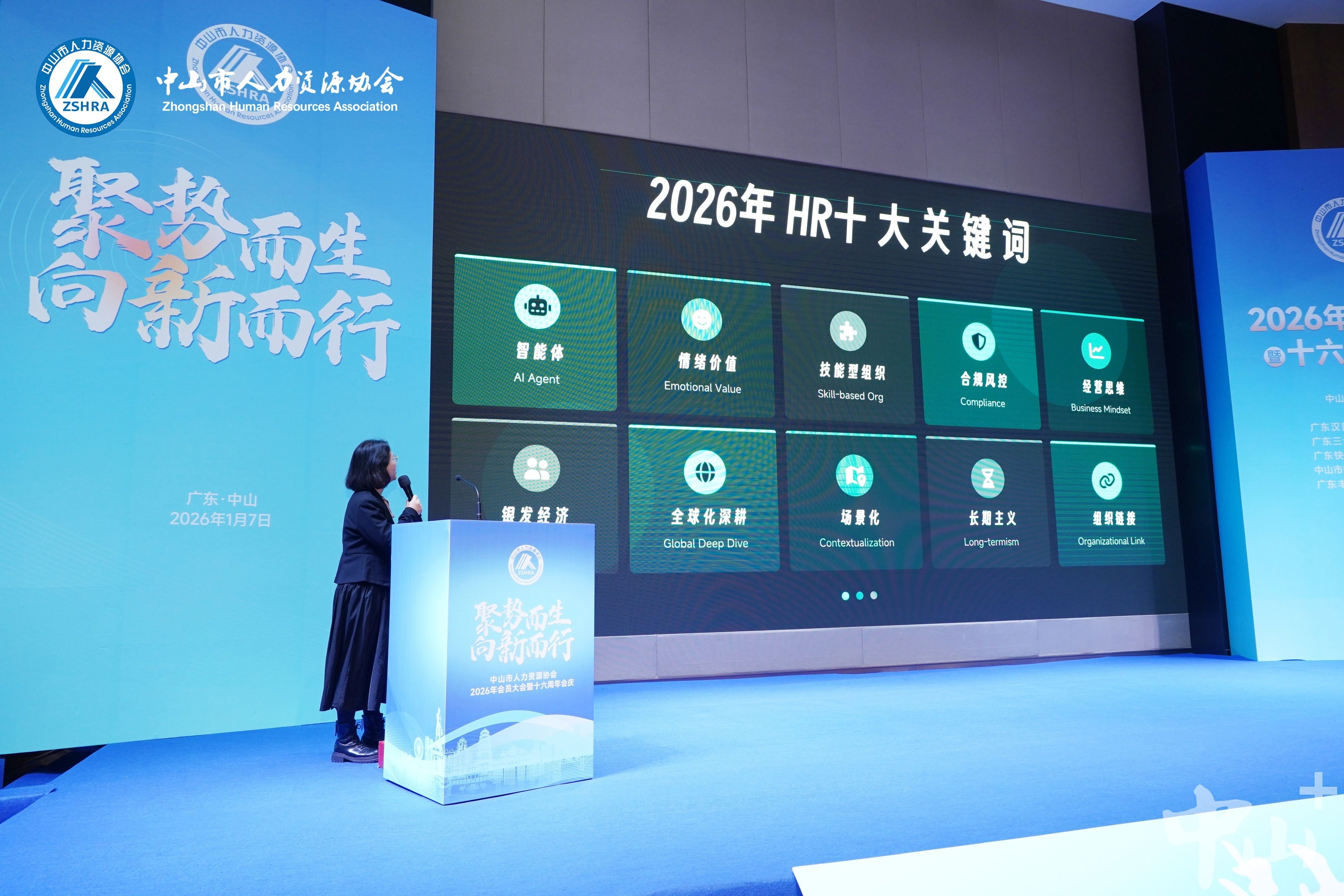 1月7日,中山市人力资源协会2026年会员大会在中山市东区举行。市人社局、市总工会、市工商联相关领导与200多家中山企业高层和人力资源总监齐聚一堂,以“聚势而生,向新而行”为主题,深入探讨分析中山制造业转型升级过程中存在的人才结构性矛盾,共谋为中山高质量发展提供人才保障的新思路。