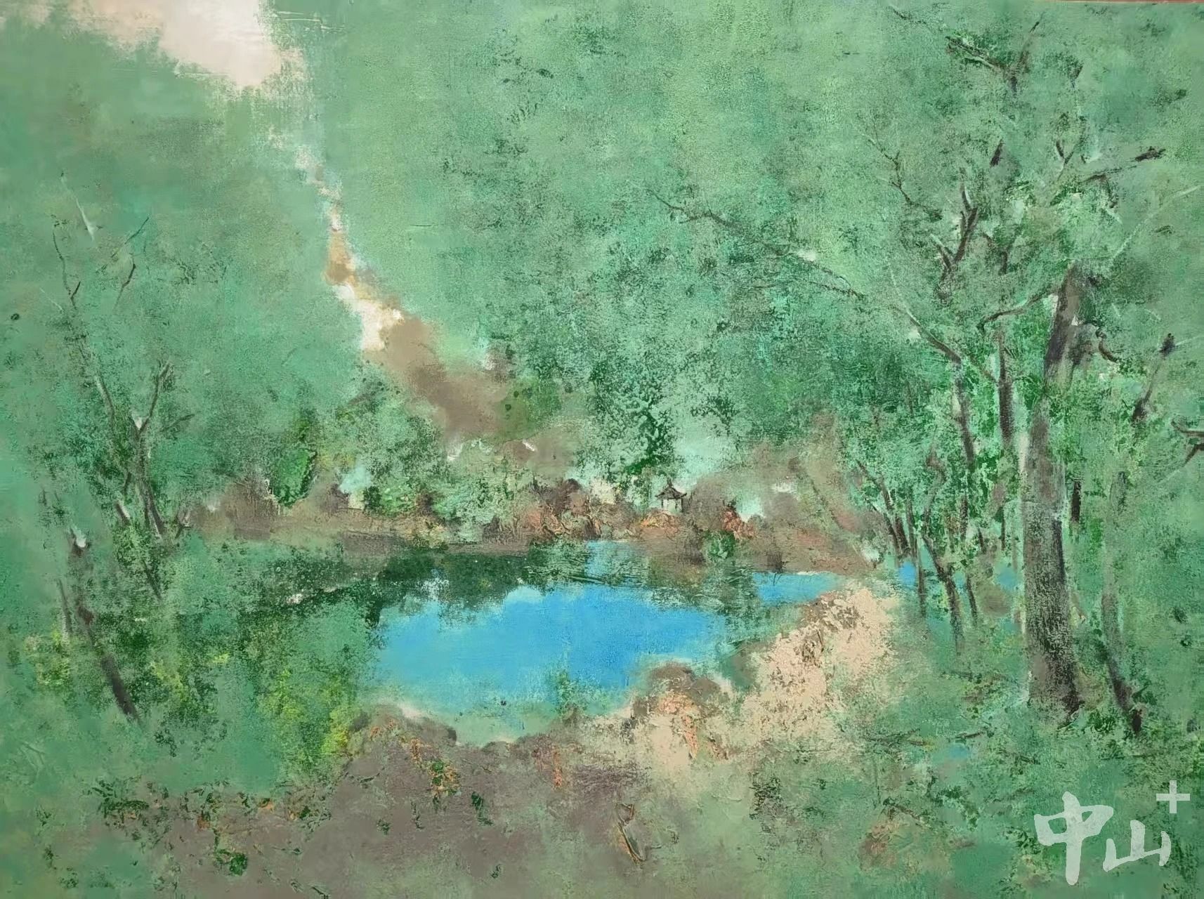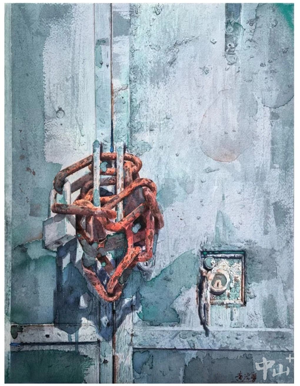 中山入选的三件作品均以独特视角与精湛技艺脱颖而出:市美协主席肖伟的《残垣系列之六:追忆》,以废砖与纸飞机为创作素材,通过红与白的色彩碰撞、虚实相生的光影处理,将废墟与希望的意象巧妙融合,兼具思想深度与艺术张力;市美协理事黄治勇的《岁月无声》,聚焦旧门板与锈迹斑斑的锁链,灰蓝底色与赭红锈迹交织辉映,定格下日常中易被忽略的岁月温度;市美协副秘书长肖力强的油画《青城天下幽》,以青绿为主色调,糅合写意与抽象手法,凭借厚重的肌理质感与鲜明的冷暖对比,勾勒出山林清幽空灵的自然意境。三件作品虽题材各异、画种不同,却共同展现了中山艺术家扎根生活、追求极致的创作态度,以及兼具个性化表达与专业功底的艺术水准。
