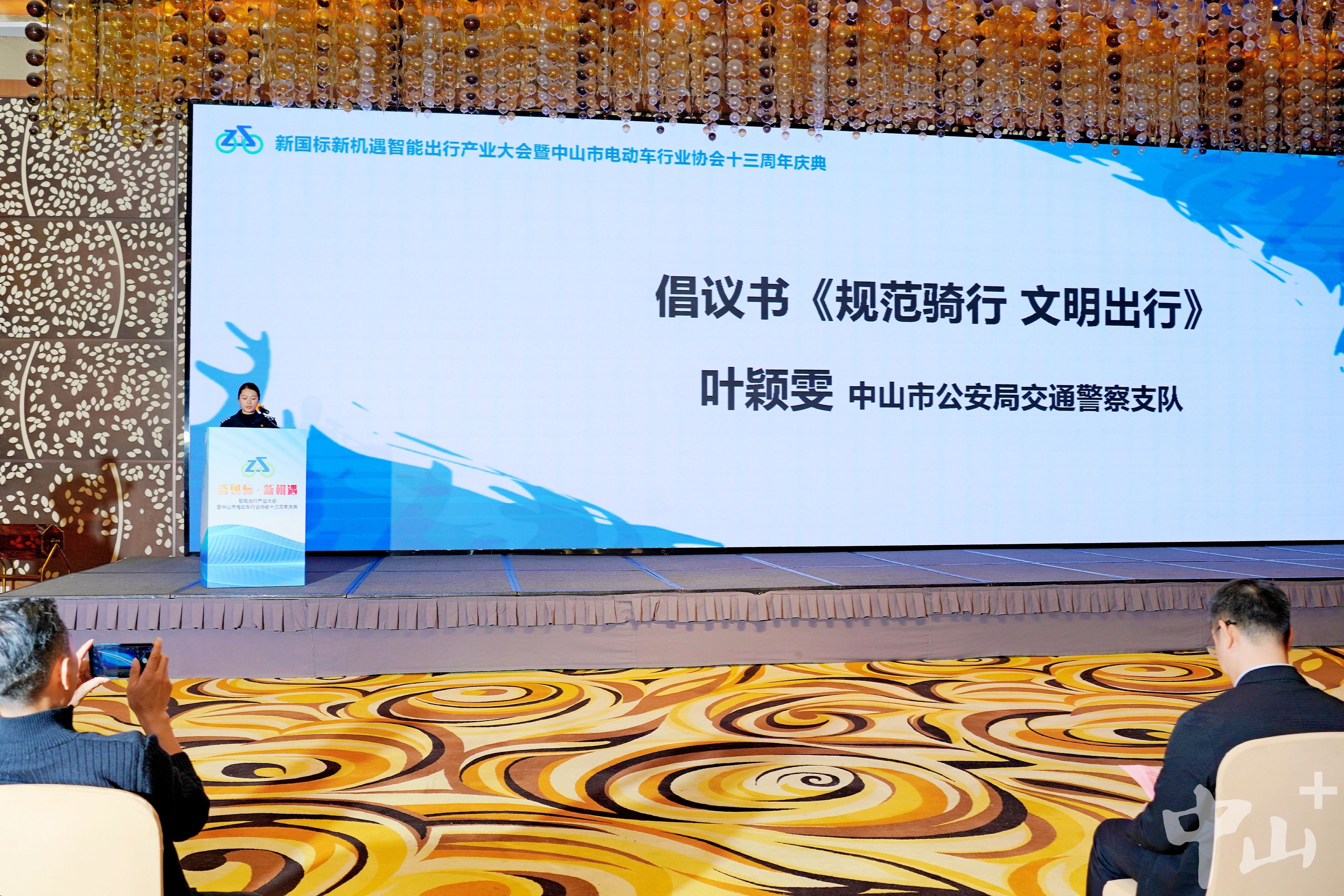 1月16日,“新国标·新机遇——智能出行产业大会暨中山市电动车行业协会十三周年庆典”在中山市南区街道举行。本次大会由中山市电动车行业协会主办,汇聚雅迪、台铃、爱玛等众多主流品牌及产业链上下游企业,并邀请相关管理部门、质检机构、行业专家及超过600位经销商代表齐聚一堂,共同探讨电动自行车国家新标准(GB17761-2024)全面实施后的行业发展趋势。