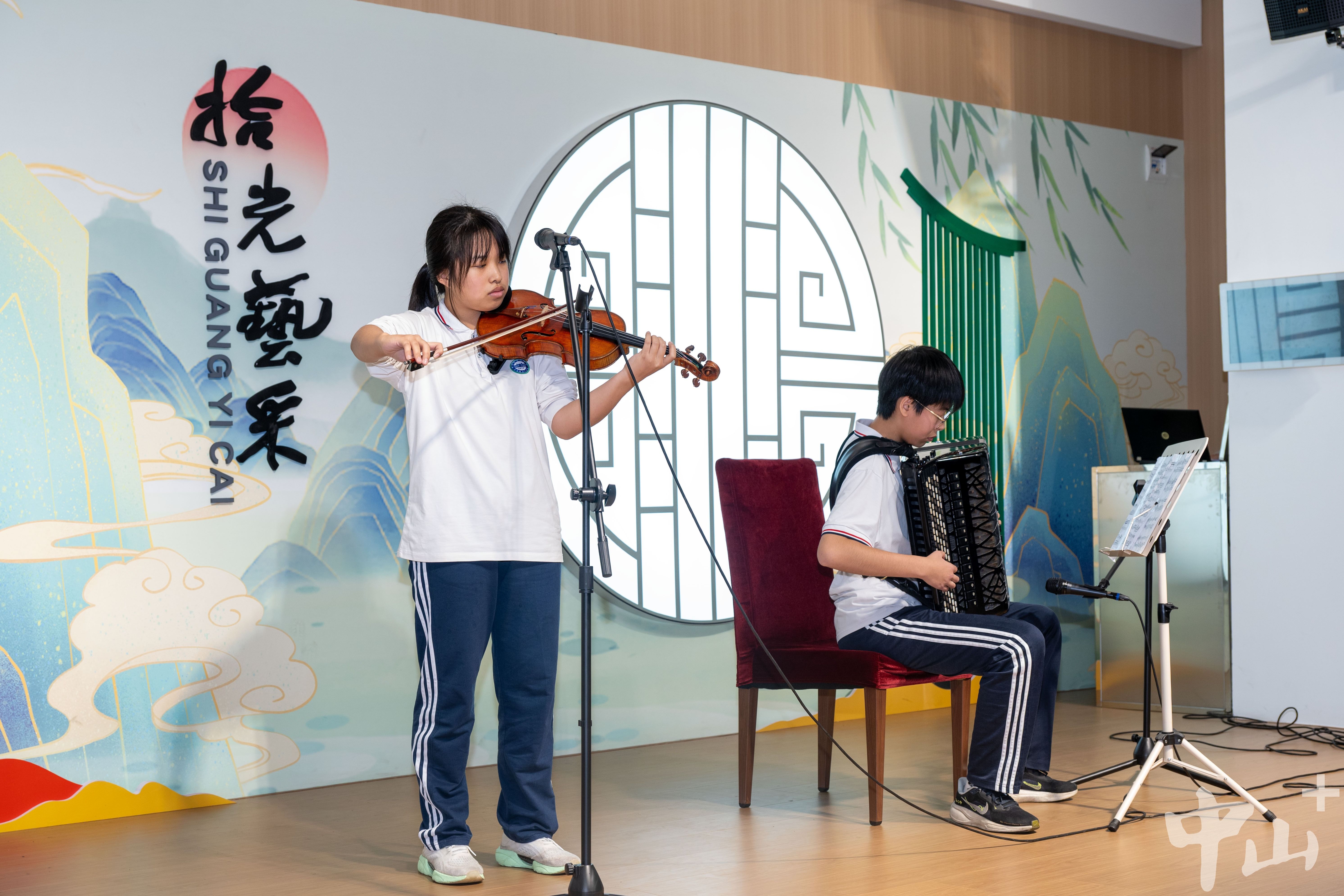 据中山市实验中学副校长王辉介绍,该校现有高中艺术生100余人。自去年成为广东省艺术教育特色学校培育对象后,学校持续加强艺术品牌建设,推出一系列举措,包括在校内两个饭堂建艺术小舞台,聘请中央音乐学院等高校专家来校指导,开展丰富多彩的艺术节活动等。“饭堂的小舞台既是艺术特长生锤炼技艺的‘练兵场’,也是高三学子缓解压力、舒缓情绪的心灵港湾。”该校校长刘朝晖表示,学校已将艺术教育深度融入日常教学与校园文化建设,致力于为学生搭建多元化的展示平台,助力他们在实践中成长。