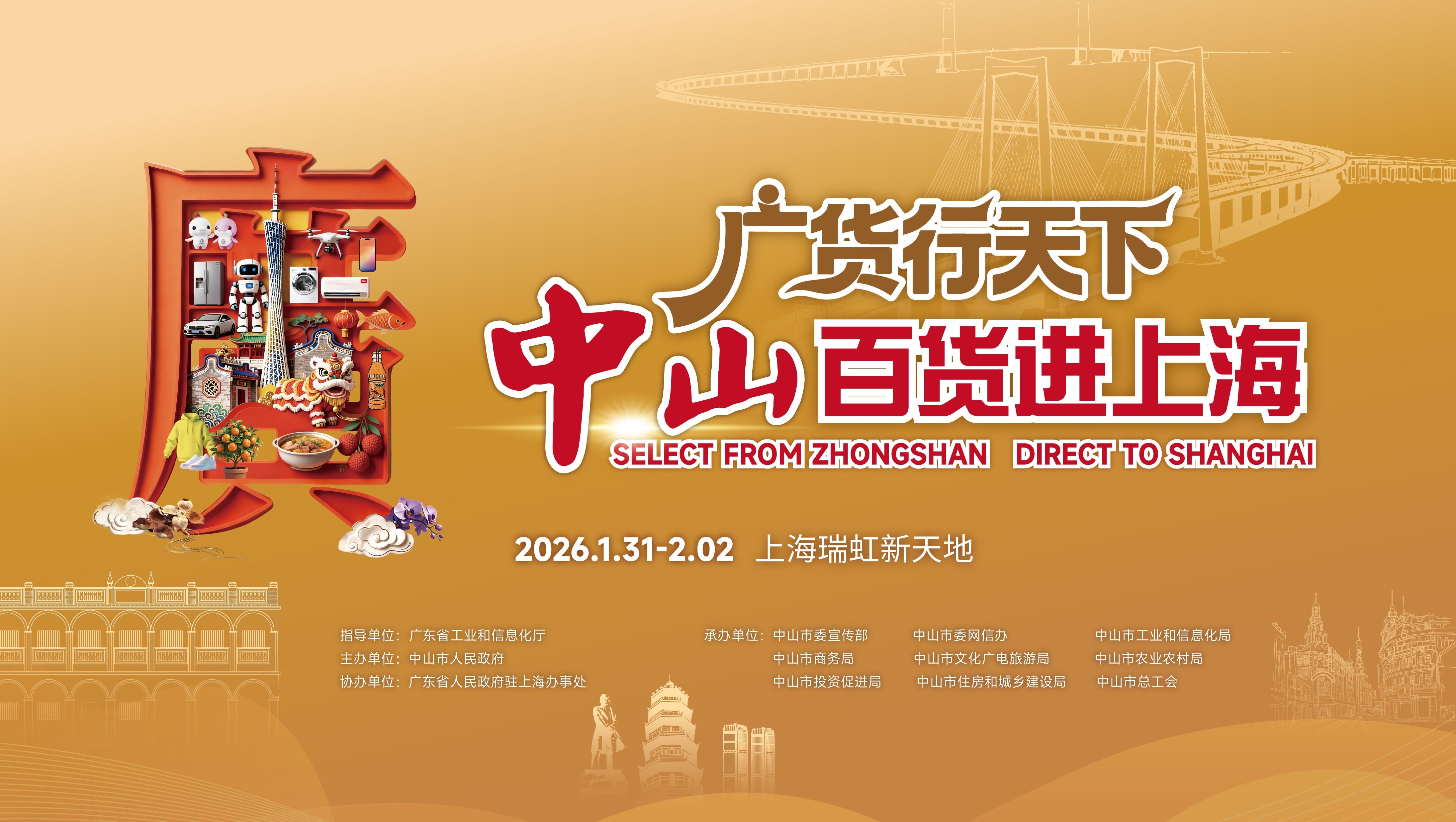 即将到来的1月31日至2月2日,“广货行天下·中山百货进上海”活动将在上海市虹口区瑞虹新天地太阳宫开展,携中山智造优品、特色风物与文旅魅力,续写香山商帮与上海滩的百年佳话。