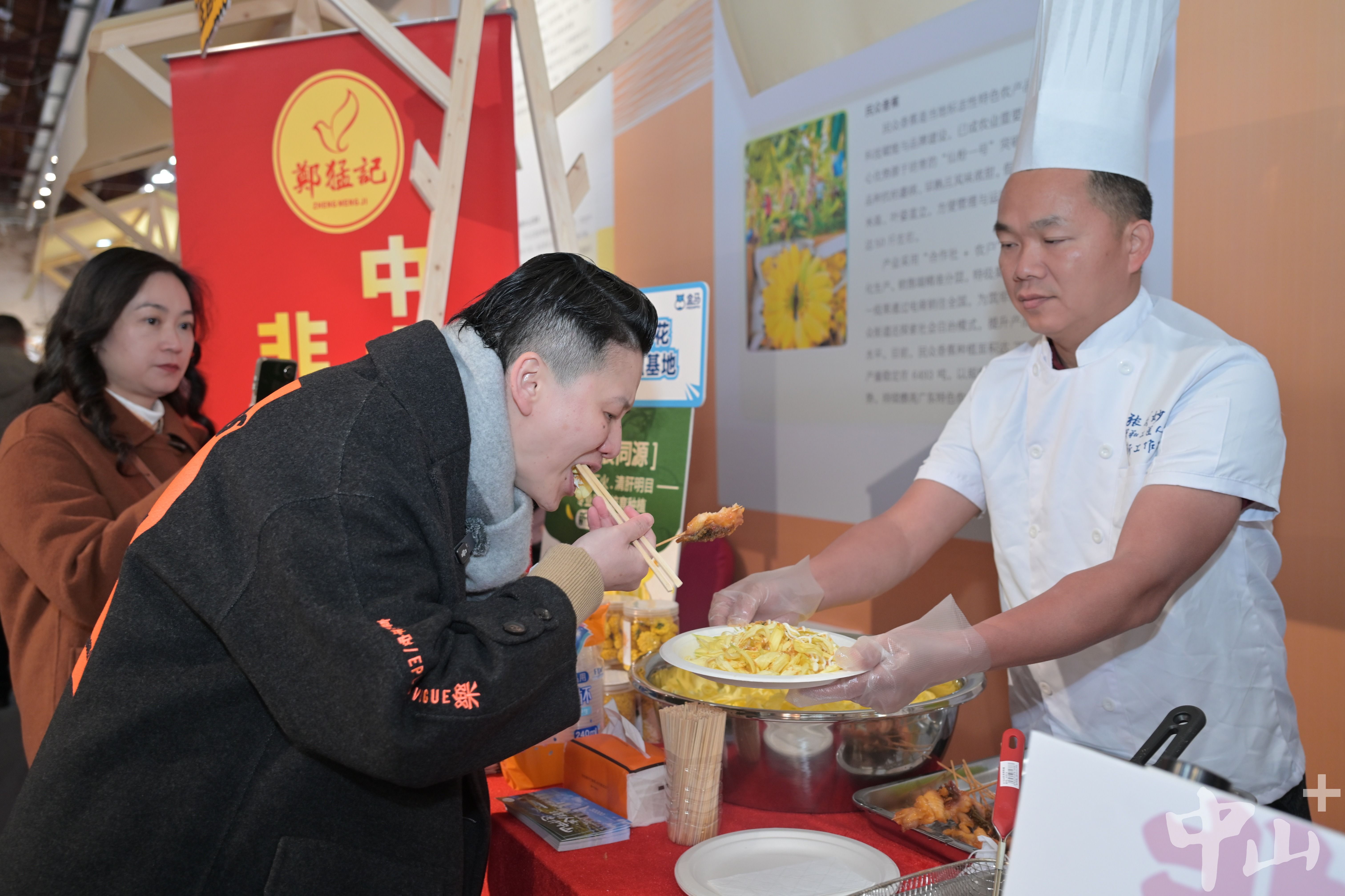 而在“中山香农”展区的黄圃腊味、神湾菠萝等地道风物香气四溢;“文旅中山”展区的城市风光展架前,不少上海市民正在咨询春节赴中山的旅游路线;创意挥春、手绘平安扇体验区里,孩子们用画笔勾勒出充满广府年味的图案;石岐乳鸽、沙溪扣肉等特色美食摊位前更是排起长队,不少市民表示:“终于在上海吃到了地道的中山味道”。