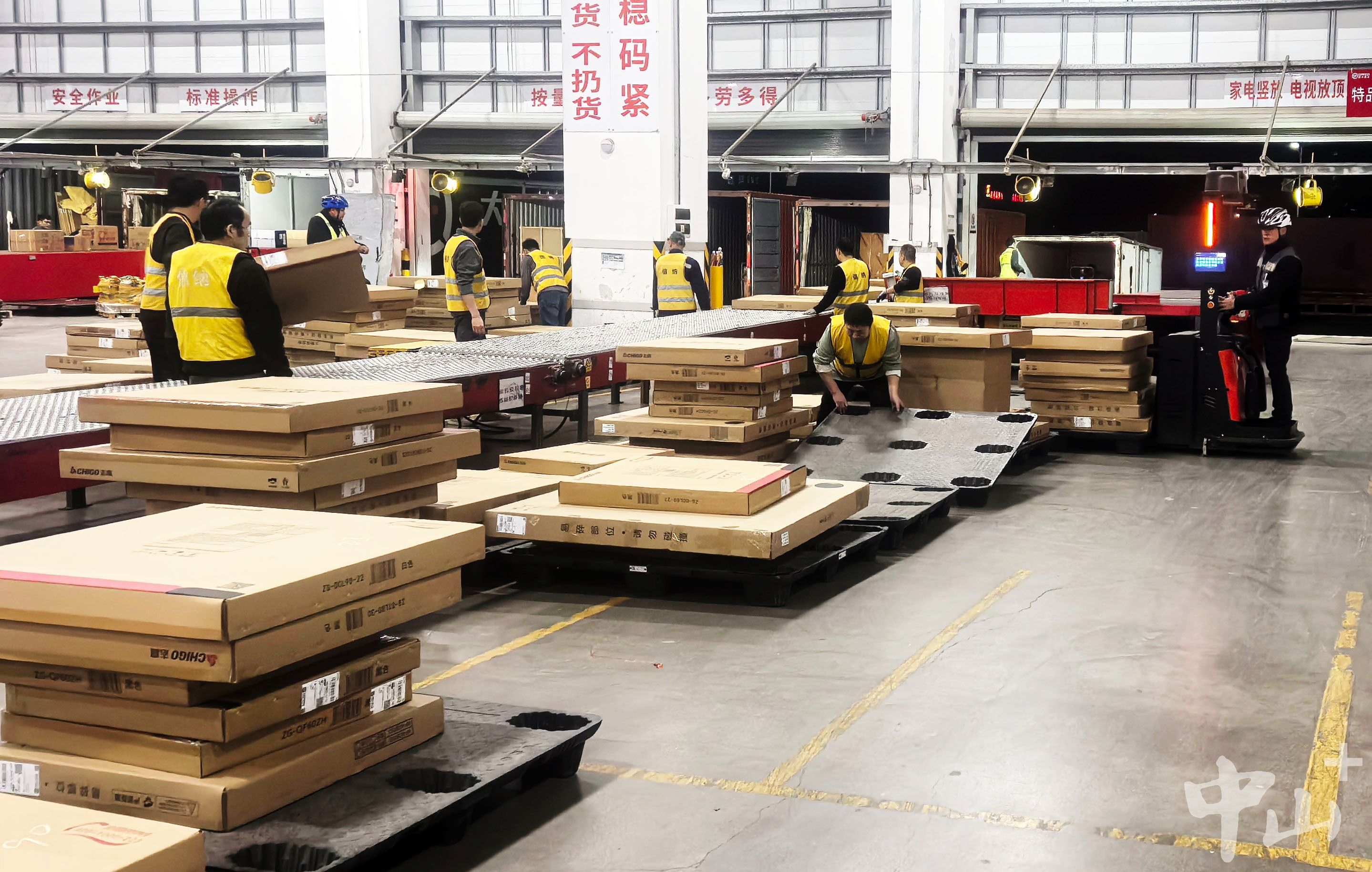 2月4日,春节年货高峰全面开启,三角镇一物流枢纽内一派热火朝天的繁忙景象。作为粤西片区年货流转的关键节点,顺丰华南中山大件转运中心火力全开,日均处理快件近1600吨,较平日激增超60%;其中省内家具类快件主要流向湛江、茂名等地,涨幅突破120%。