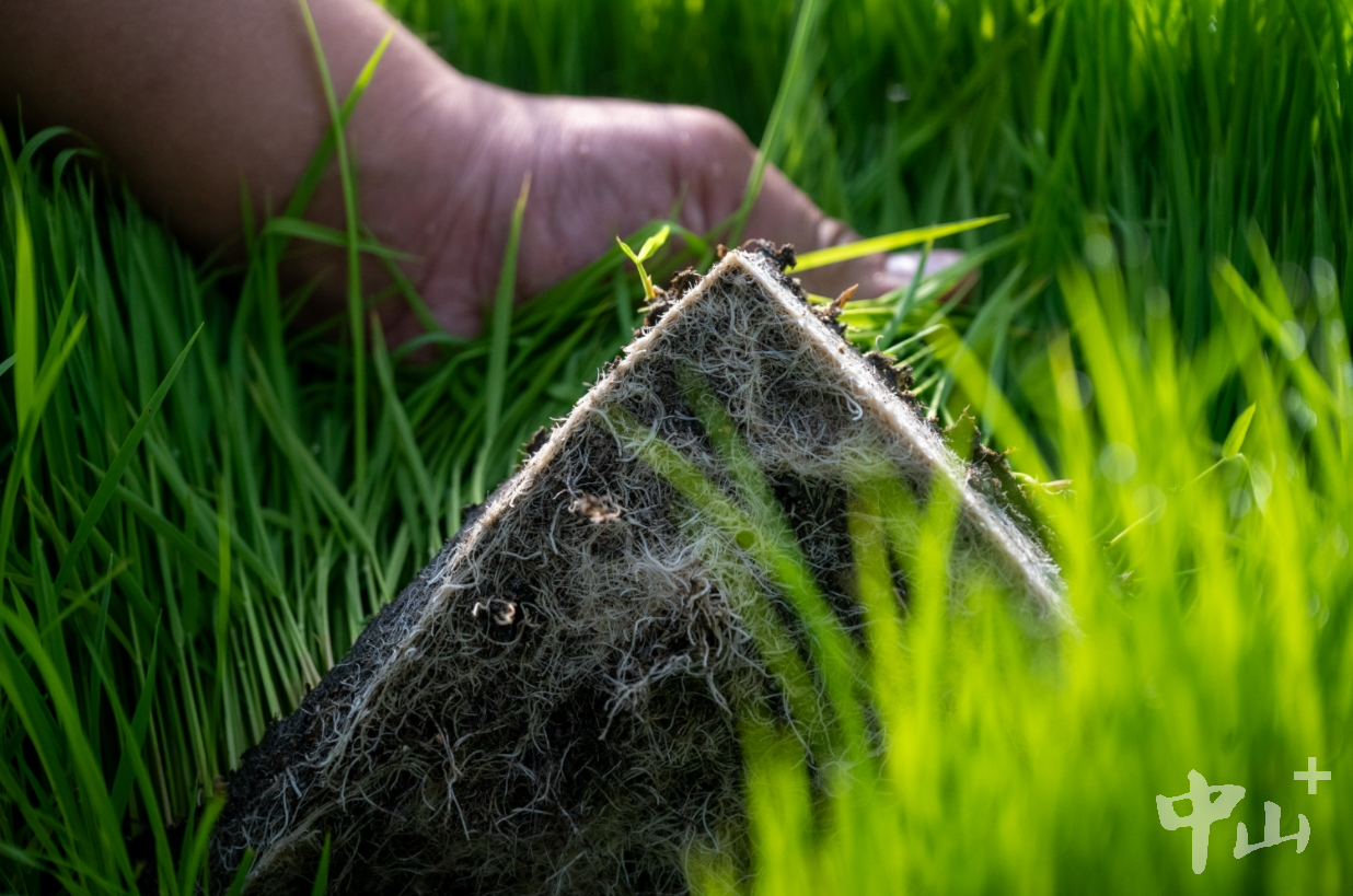 春风拂面,田畴焕新。3月12日,在中山市南朗街道冲口村的水稻田里,搭载GPS导航的插秧机穿梭往来,嫩绿的秧苗被精准插入田中,勾勒出整齐的线条;不远处的育秧大棚里,恒温环境下的秧苗长势喜人,新农人陈锦坤正仔细查看秧苗根系生长情况。