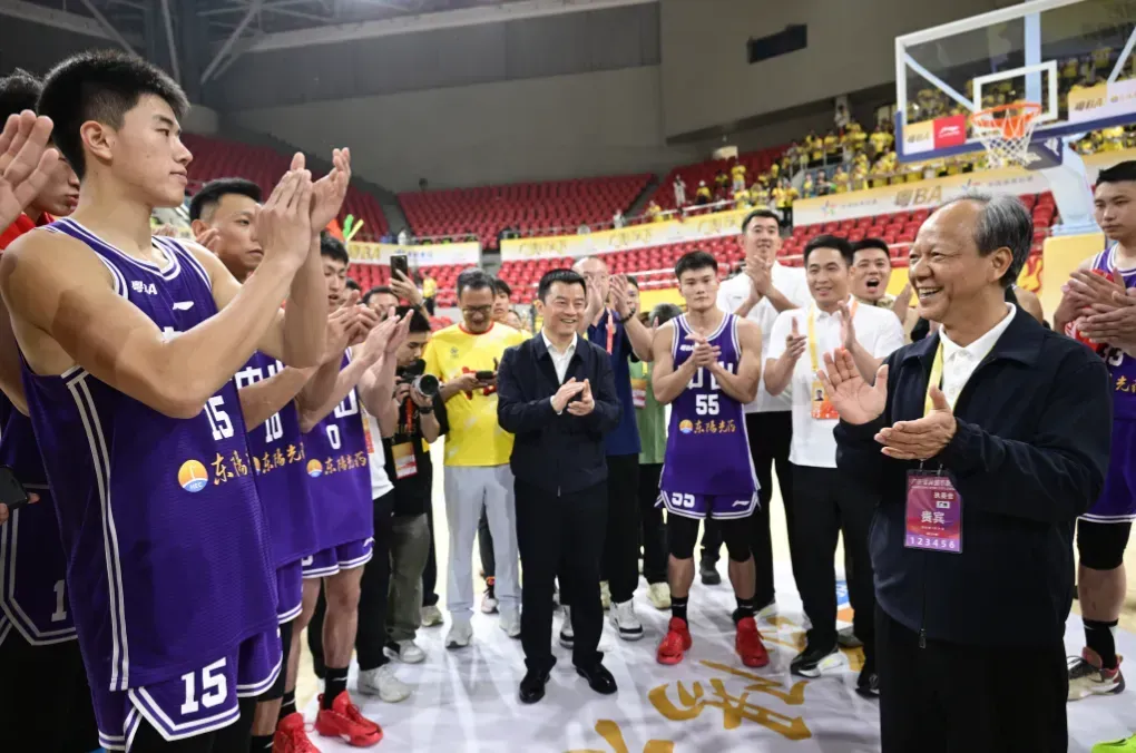 3月21日晚,2026年广东省城市篮球联赛(粤BA)揭幕战开打,两届全国村BA冠军中山队客场对阵广州队,经过全场胶着的比拼,最终中山队以86:83逆转获胜,取得“开门红”。赛后,市委书记郭文海、市长尹念红慰问中山队球员和拉拉队员,代表市委、市政府向大家表示热烈祝贺,勉励大家充分发扬攻坚克难、永不言弃的精气神,在接下来的比赛中再接再厉。
