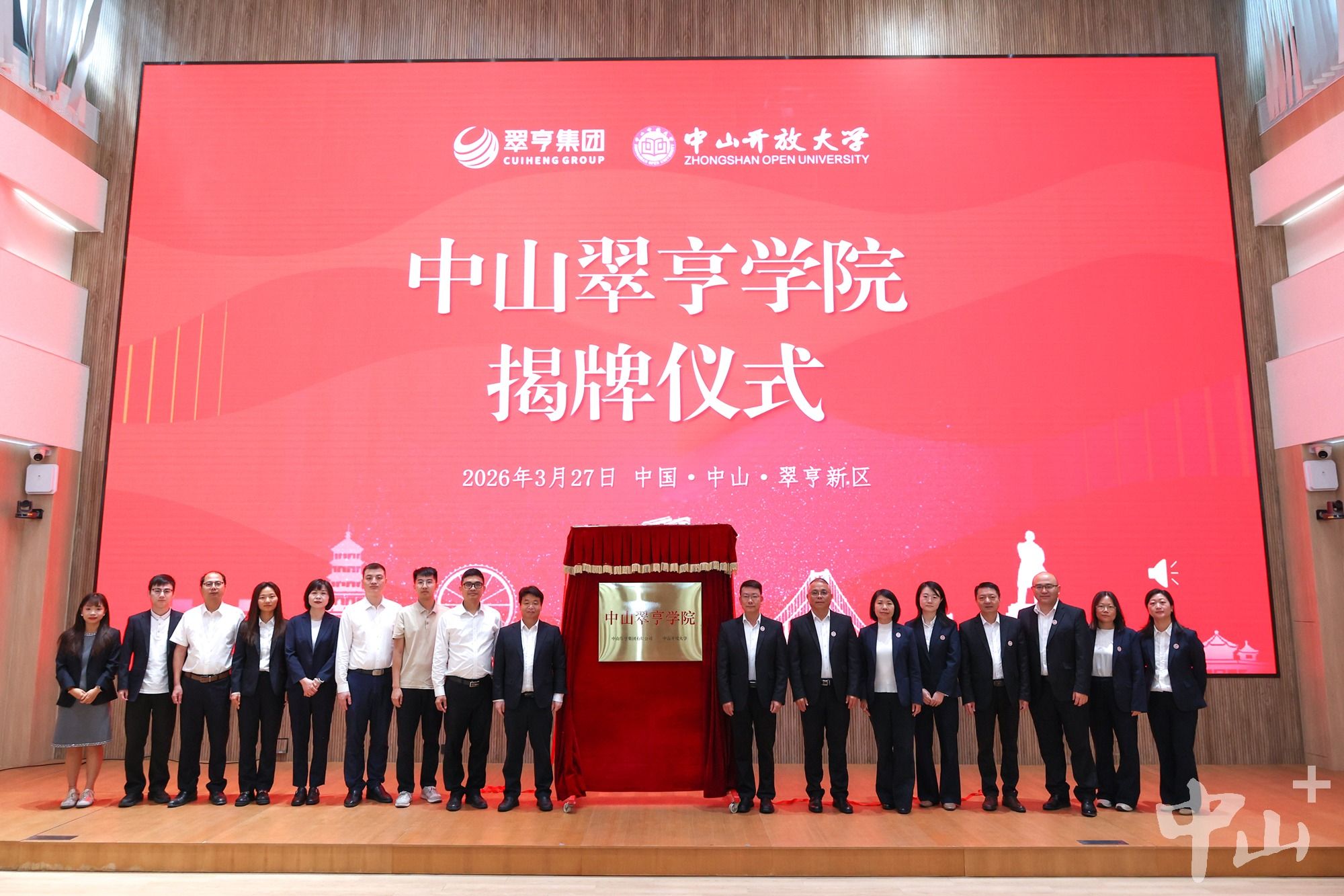 3月27日,中山翠亨学院揭牌仪式在翠亨国际科创中心举行。该学院由翠亨集团与中山开放大学联合共建,是集人才培训、学历提升、社区教育、技能培训于一体的综合性教育平台,将为翠亨新区产业高质量发展提供人才支撑。