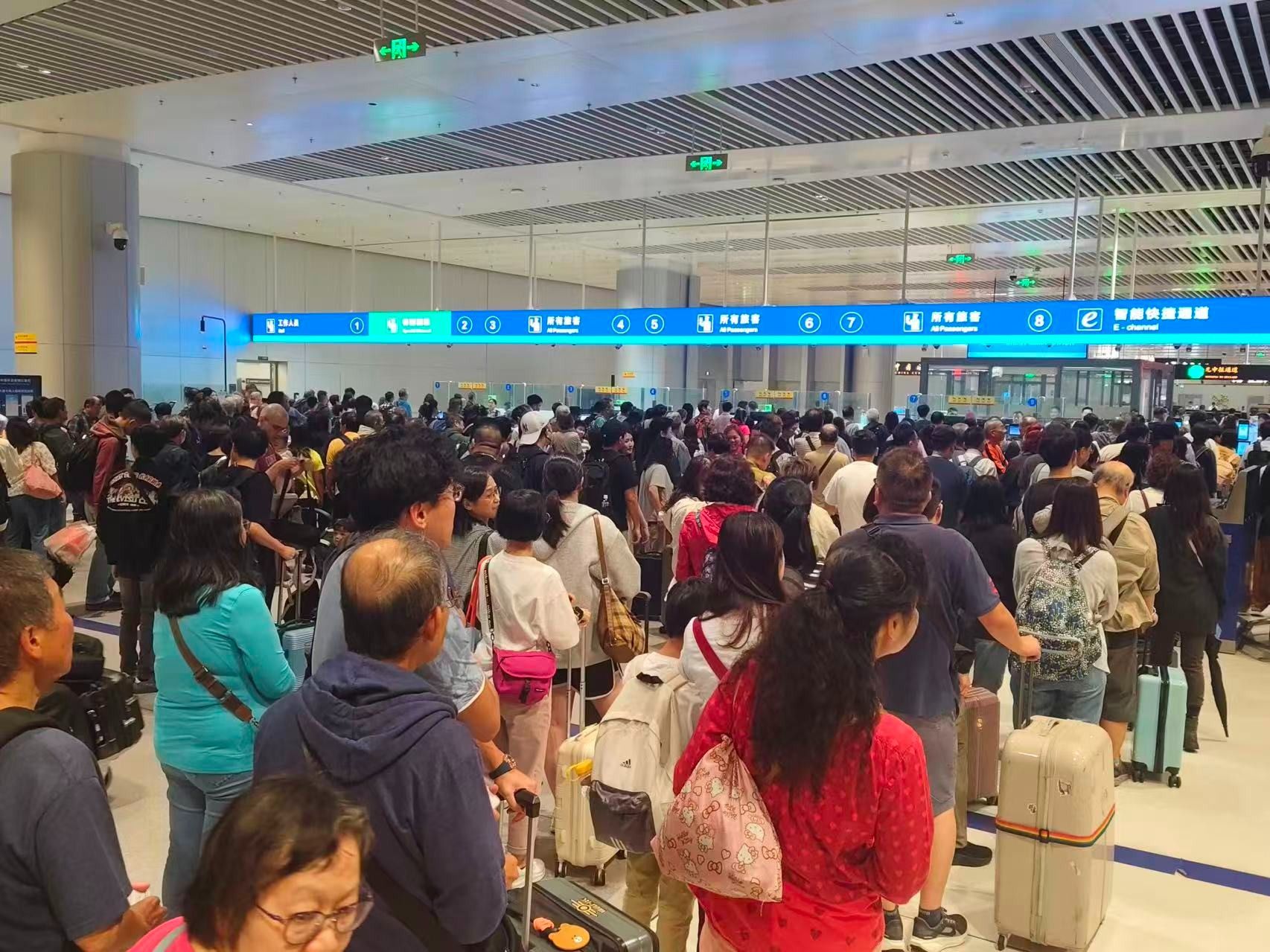 记者在中山客运口岸看到,入境大厅内秩序井然,旅客们提着行李排队等候查验,不少家庭结伴而行。据中山边检站统计,上午至中午抵港的多个入境客轮航班均接近满员。