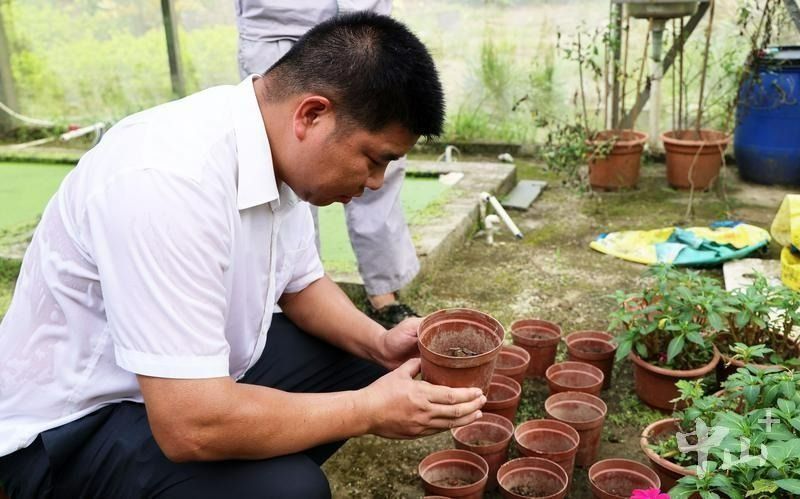 珍贵的果实被带到距离故居500米之外的后山花场。在那里,胡剑文和园艺工人一起剥开豆荚、去掉果肉,选出形貌优秀的种子,浸泡入瓶中。几天之后,他们将这批种子移入大棚花盆中进行首轮栽培。
