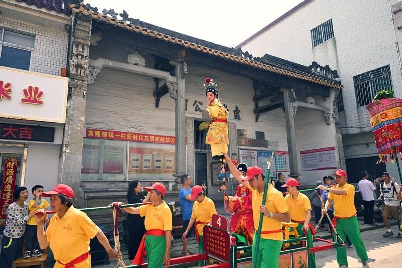 4月19日,农历三月初三,中山市黄圃镇三社社区锣鼓喧天,6版飘色沿着古街巷缓缓巡游,数名两三岁幼童立于精致小巧的色梗之上,以锦衣华服、古色妆容的模样出现。远远看去,一个个稚嫩孩童仿佛“飘”了起来,在岭南味十足的古朴街巷“托举”下,呈现出令人过目难忘的独特美感。飘色这项始于明末清初的省级非遗项目,在农房风貌提升后的新环境中延续着百年传统。