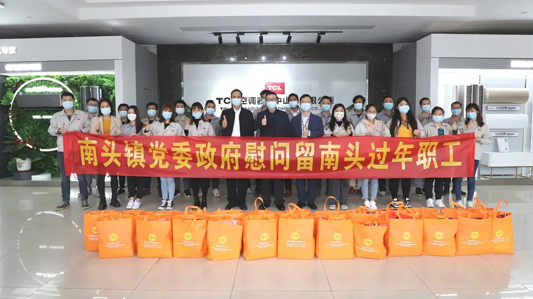 当天上午,南头镇党委书记徐宁军、党委委员钟坤海等镇领导来到TCL空调器(中山)有限公司,与就地过年的企业员工亲切交谈,并向他们送上慰问品及新春祝福,同时提醒他们春节期间做好个人防护,祝福他们在南头镇度过一个幸福安康的虎年。