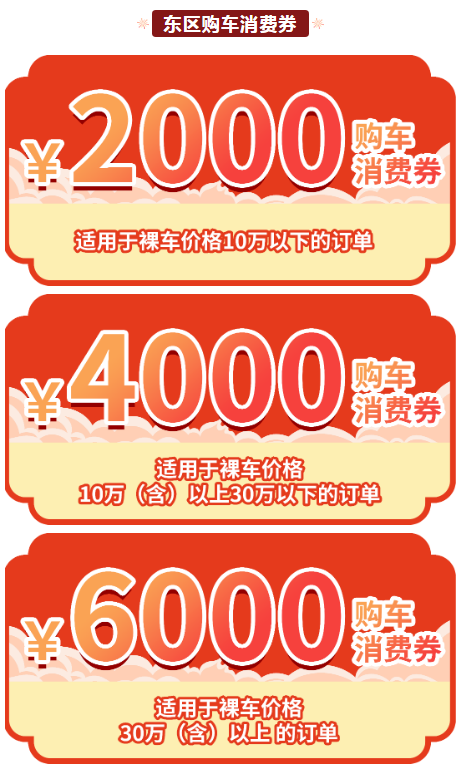 各档位车型补贴名额根据实际使用情况进行调整,消费券领取方式,请大家关注“东区发布”后续推送。