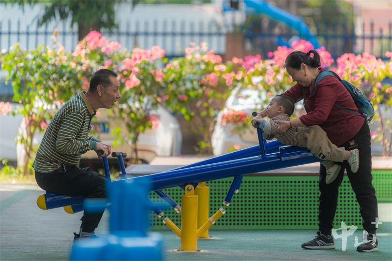 距离龙井小区不远的松苑(横)街小区,同样隶属于竹苑社区。曾经杂草丛生的绿化带,如今变身为色彩斑斓的儿童乐园:秋千架旁加装了防摔软包,小朋友在玩具小木马上蹦蹦跳跳,连平日里最调皮的小男孩,都能在这里乖乖排队。