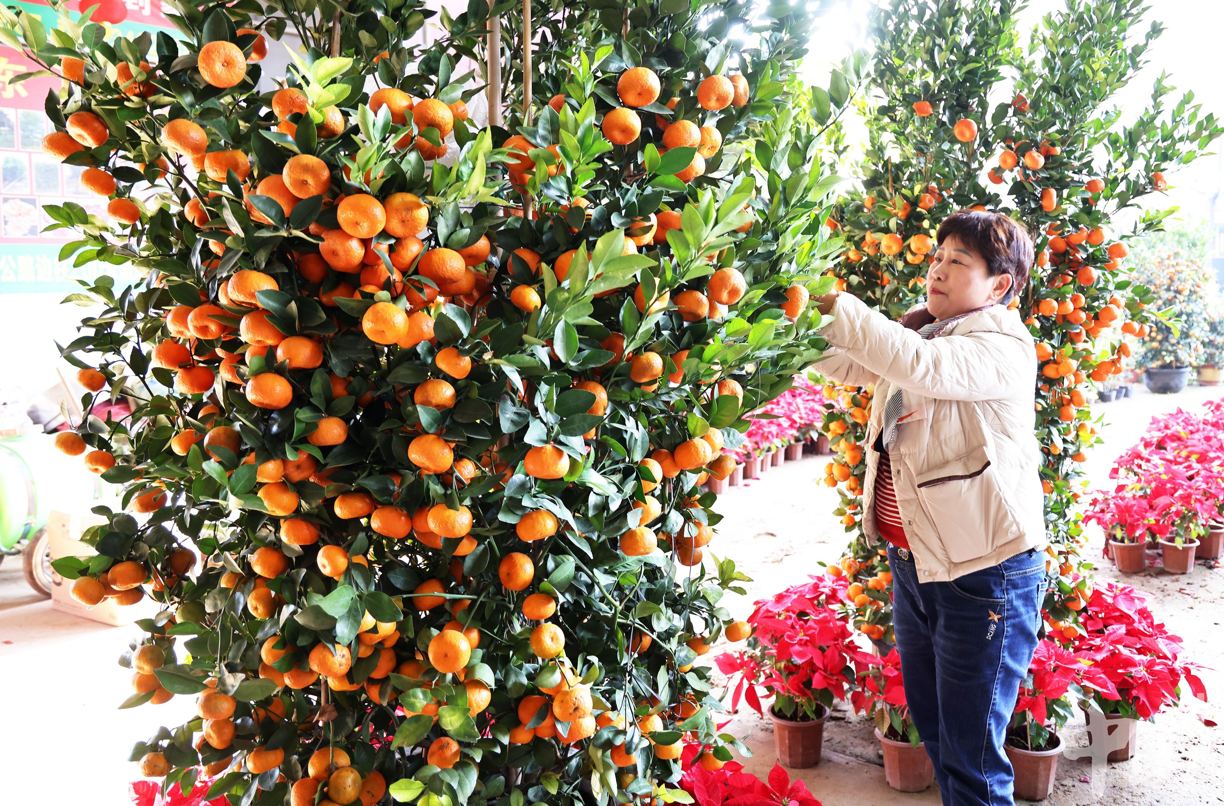 她随手拿起一串小巧的中国结,往一株年桔的枝头一挂,瞬间添了几分年味儿。“光有花木不够,配上这些小灯笼、发财童子挂饰,喜庆劲儿才够足,大家看着喜欢,销量自然就旺了。”连姐说,这些小投入看似不起眼,却能大大改变人们对普通花卉的观感,让年花销售愈发红火。