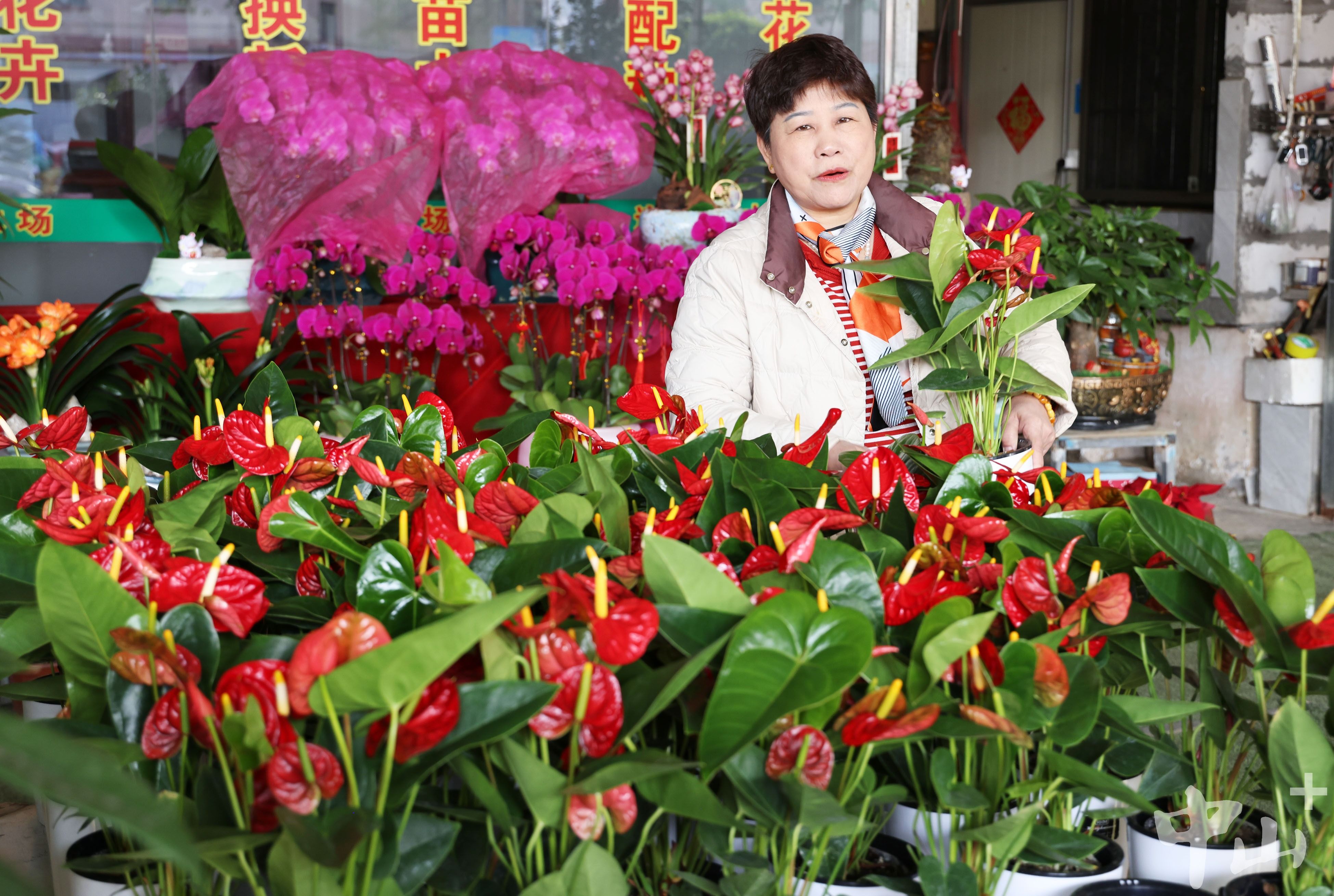 “虽然离春节还有段时间,但企业和乡村都忙着扮靓环境,街道、厂区装点起来,员工看着喜庆,干活也更有劲儿。”连姐穿梭在百余款新春花卉中,红色的一品红热烈似火,清雅的蝴蝶兰亭亭玉立,翠绿的富贵竹挺拔俊秀,各色花草相映成趣。