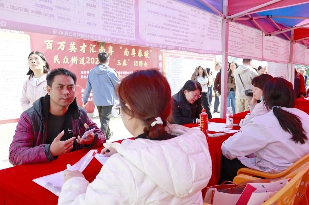 3月6日至8日,百万英才汇南粤“南粤春暖”民众街道2026年“三春”招聘会在民众文化广场举行,求职者可趁周末到现场觅心水岗位。
