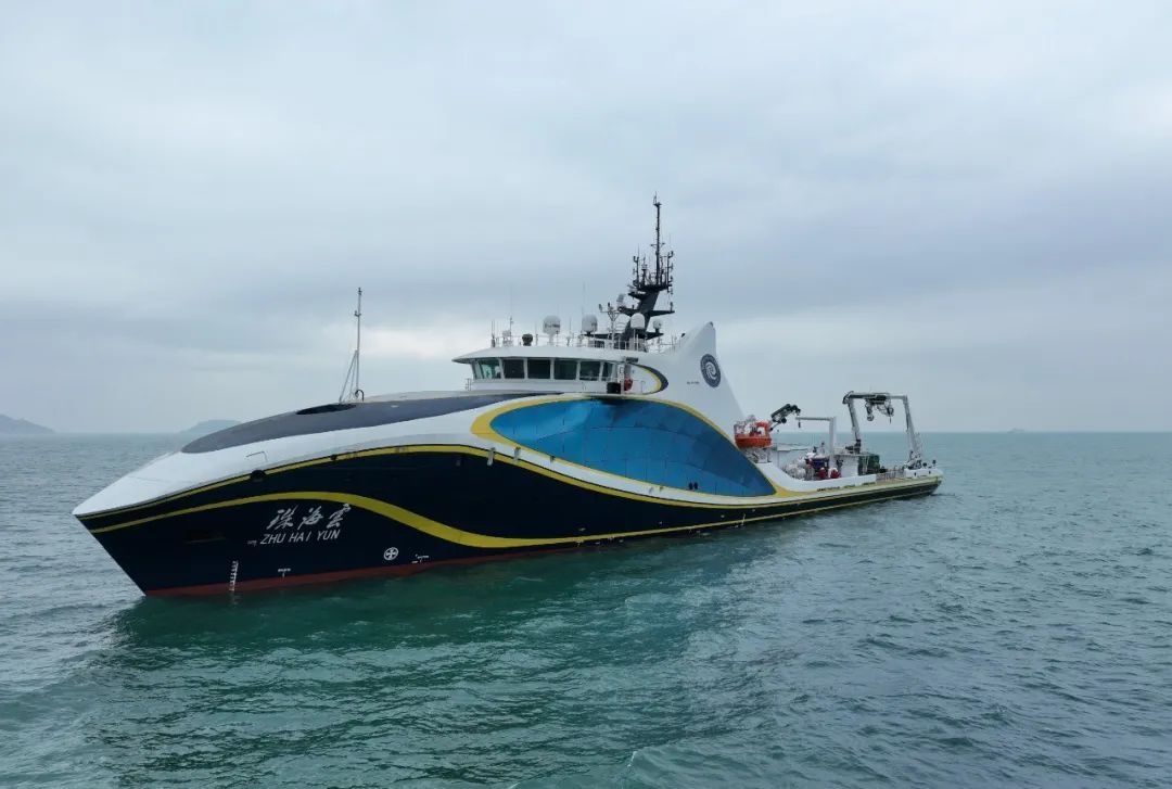 “珠海云”由南方海洋科学与工程广东省实验室(珠海)主持制造,该船是全球首艘具有自主航行功能和远程遥控功能的智能型海洋科考船,获得了中国船级社颁发的首张智能船舶证书。其设计建造贯彻了“绿色智能”“无人系统科考支持”和“未来感”等设计理念,主体设备国产化率高,动力系统、推进系统、智能系统、动力定位系统以及调查作业支持系统等均为我国自主研制。